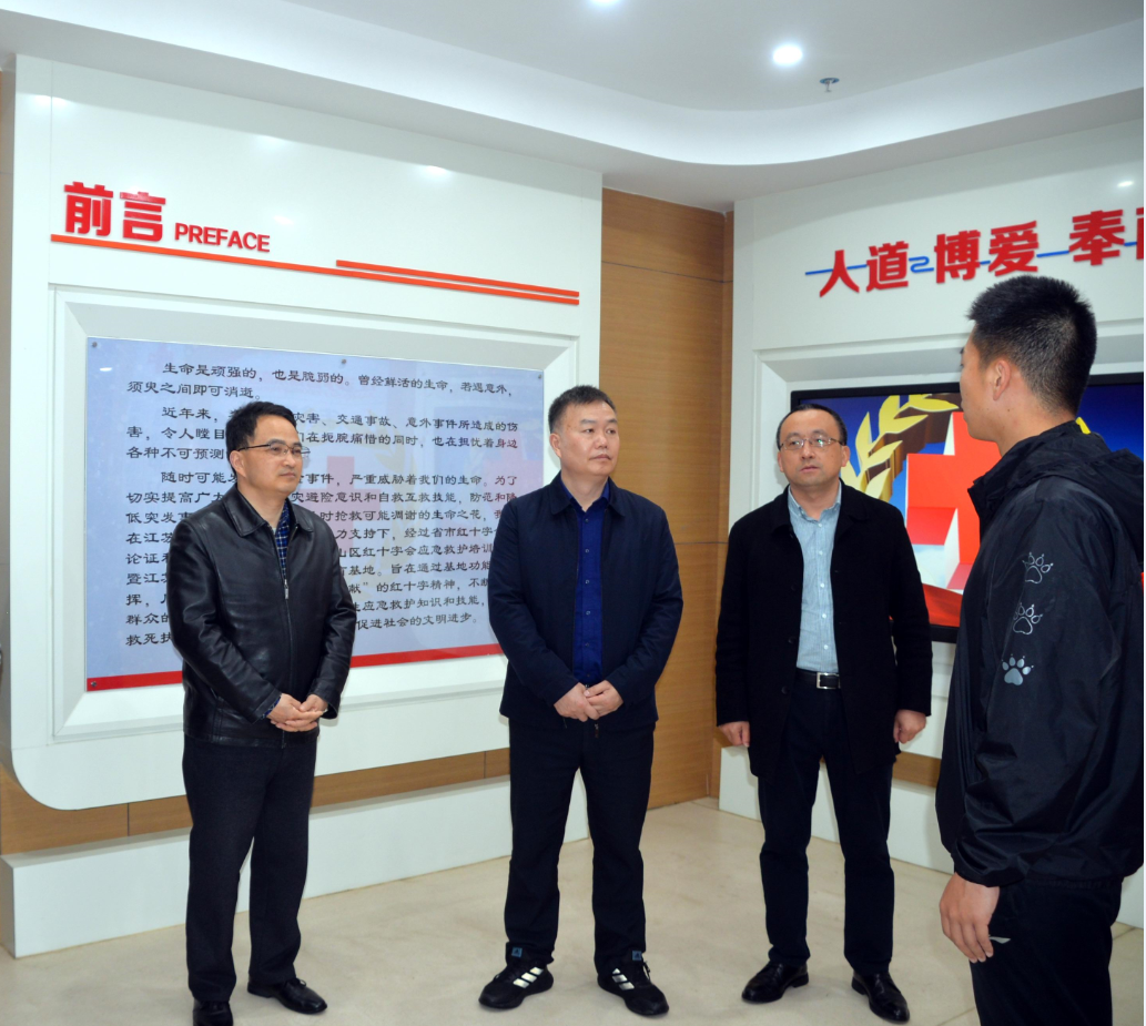 3月23日,江苏省红十字会卫生救护部部长王旭明、江苏省财政厅社会保障处四级调研员章卫一行来到江苏省锡东高级中学调研应急救护工作,实地查看学校应急救护基地建设情况。无锡市红十字会党组成员,副会长周彬、锡山区红十字会副会长顾艳、江苏省锡东高级中学副校长谢晓丰等陪同调研。