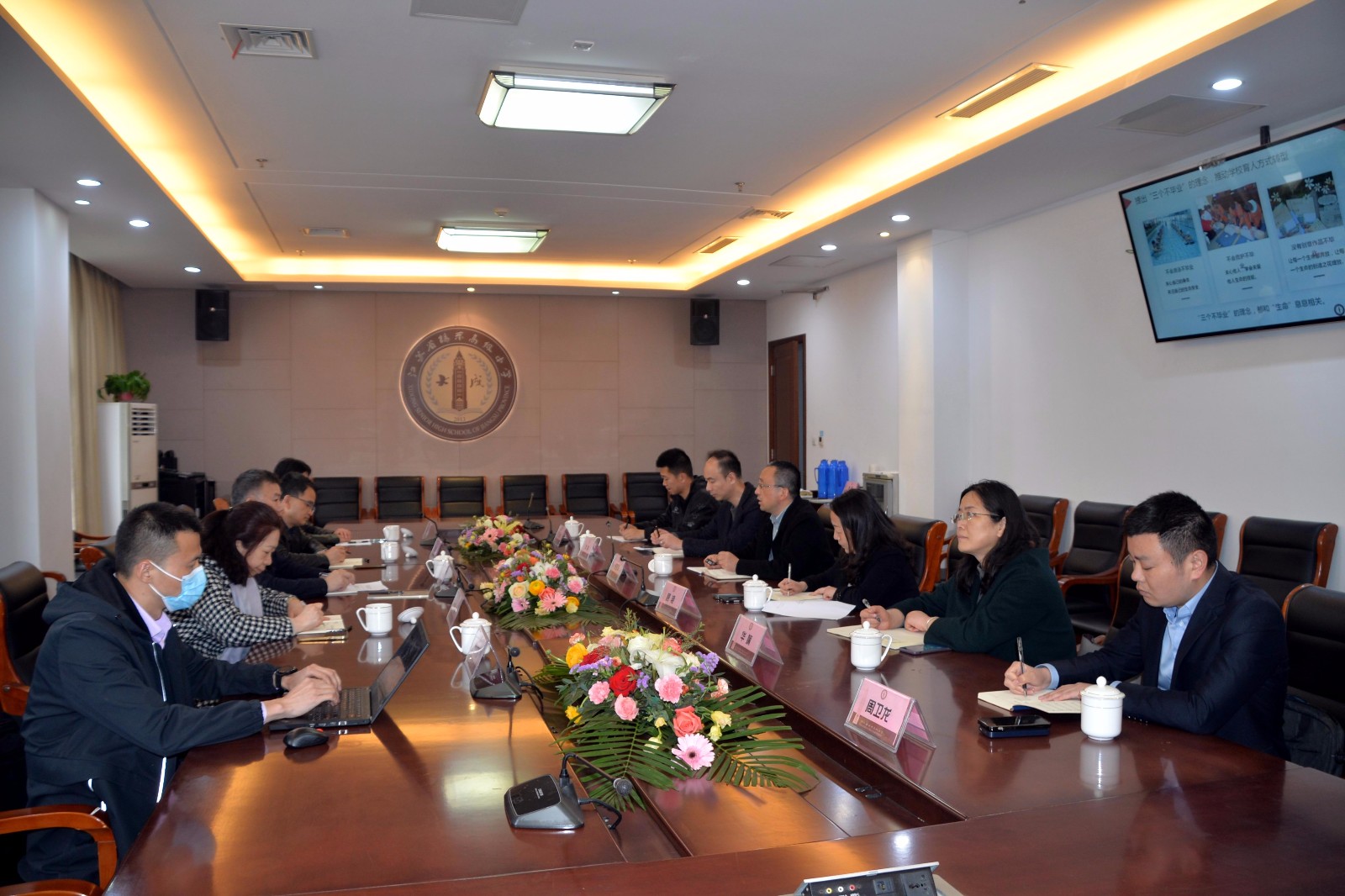 随后座谈会上,谢晓丰副校长围绕生命至上的理念,建设生命教育基地,开设生命之光课程,普及应急救护课程,拓展关爱生命行动等五方面作了专题汇报。调研组一行对江苏省锡东高级中学近年来在应急救护培训方面取得的成效表示肯定。