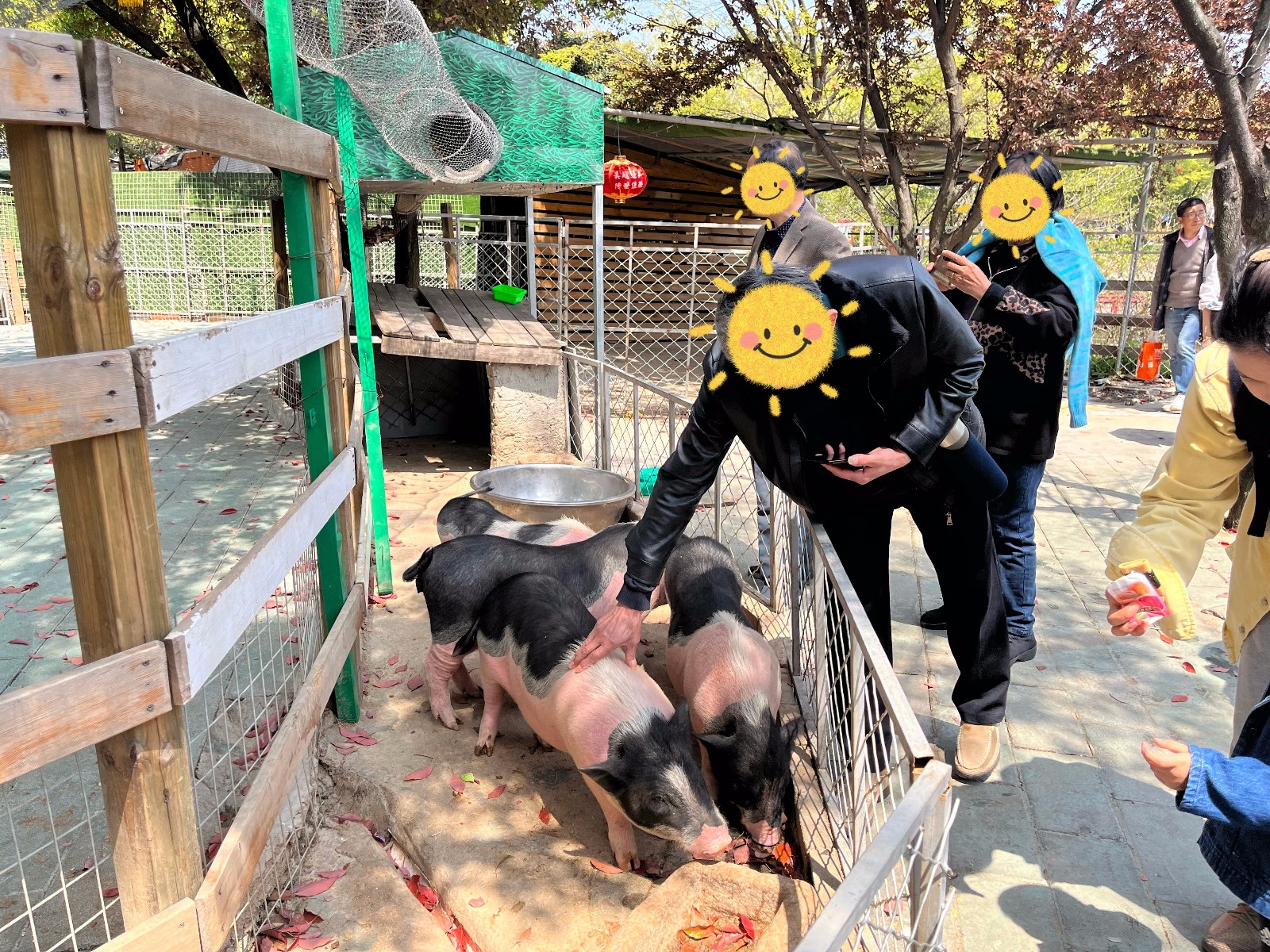 一入园,就是醒目的四季常春门楼,在志愿者们的带领下,叔叔阿姨们一边感受着美妙的春光,一边欣赏着美丽的风景。有的阿姨在美丽的虞美人旁拍照留念,有的伯伯看着小香猪忍不住摸摸它们的背,有的叔叔在湖边静坐放松……大家聊着天,说着笑着,每个人的脸上都洋溢着幸福的微笑。