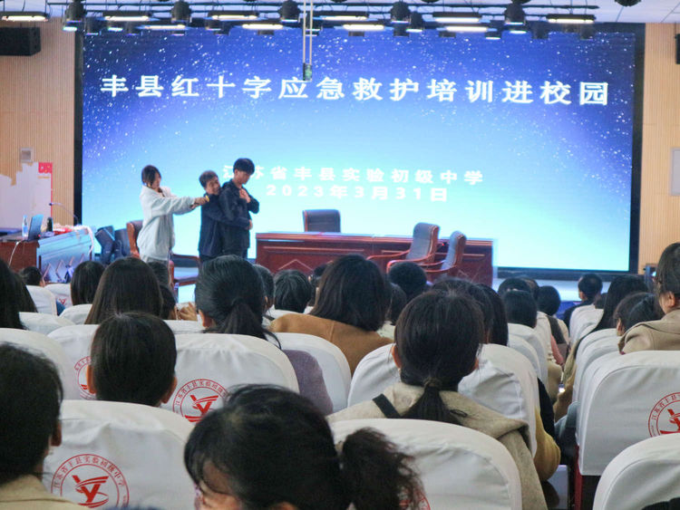为进一步普及应急救护知识,推进学校生命安全健康教育,同时提升教师医疗急救知识技能,3月31日下午,丰县红十字会为丰县实验初级中学带来了一场生动而实用的应急救护培训,全体教师参加了本次培训,为今后的突发状况做准备。