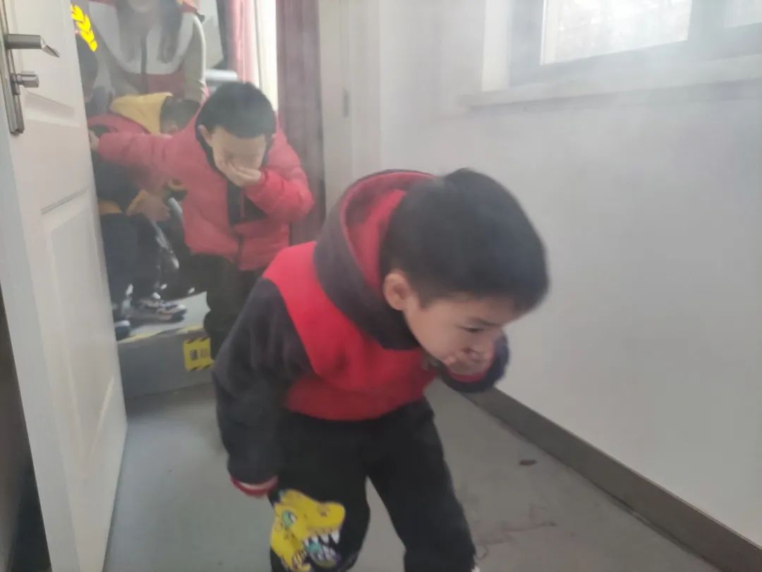 在活动的最后,为了加强巩固孩子们所学习的知识,孩子们进行了一场模拟的“火灾烟雾逃生”的演习,在开始前,红十字会的老师向孩子们介绍说明了逃生时所要注意的事项,引导孩子们在火灾来临时使用正确安全的方式,保证自身的安全。