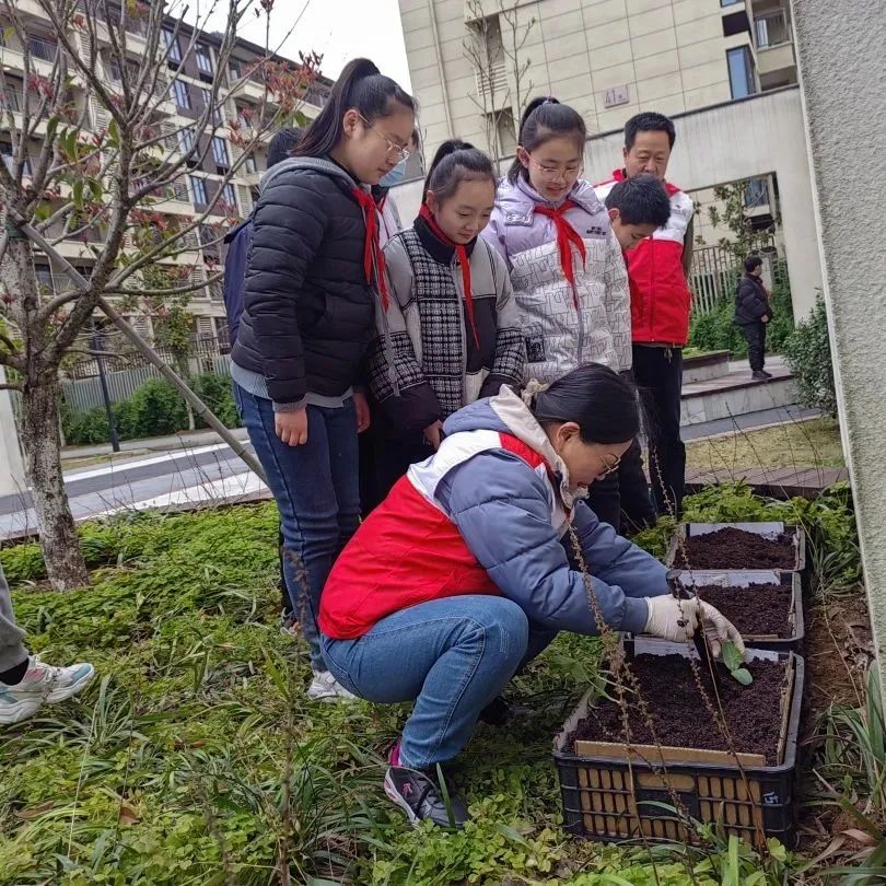 在活动中,五年级的少先队员们积极参与,一边带着铁锹、铁镐、铲子等工具,一边聆听志愿者讲解如何种植葫芦苗,学习植物生长的知识。同学们虽然平时没有做过农活,但完全不妨碍他们快速上手成为田园里的“小农夫”,即使双手沾满泥土依然不减劳动热情,发扬不怕脏、不怕累的吃苦耐劳精神。他们认真地除草、松土、挖坑、放苗、填土、浇水,希望能在葫芦苗长成时,向同学们展示自己的成果。