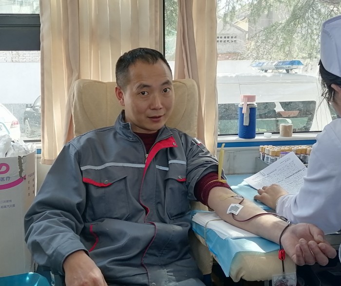 参加无偿献血的干部、职工在医生的指引下,有序填写了无偿献血登记表,随后工作人员进行资料查询、信息登记,并仔细对每一位献血者进行血压、心率、血液等健康检查。献血车上暖意融融,大家撸起袖子献出自己的一份热血。在献血的队伍中,“中国好人”、全国红十字志愿服务先进典型、“献血达人”杨小飞的身影十分活跃,他一边向献血者宣传、讲解献血知识,解答他们提出的问题,一边耐心指导他们做好献血前的各项准备工作。