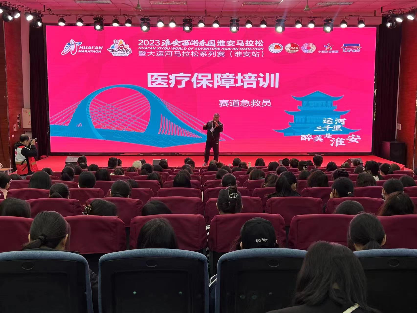 2023年淮安西游乐园淮安马拉松暨大运河马拉松系列赛(淮安站)将于 4月9日开跑,淮阴区红十字会派出15人参加医疗保障培训。