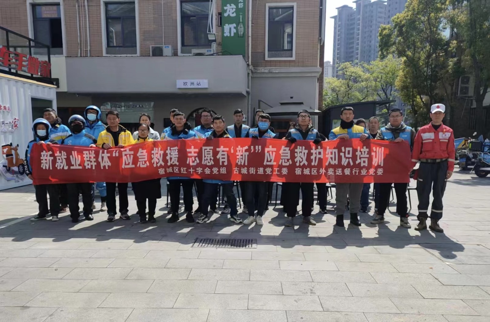 为充分发挥外卖员遍布大街小巷的优势,引导其在基层治理中贡献力量,近日,宿城区红十字会联合宿城区古城街道党工委、宿城区外卖送餐行业党委在宿城区宝龙广场开展了一场新就业群体“应急救援 志愿有‘新’”应急救护知识培训,30余名外卖骑手参加了培训。