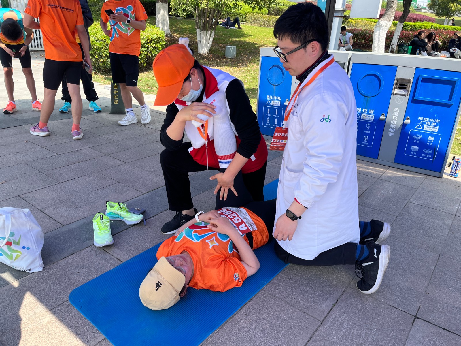 赛前,江宁区红十字会对所有医疗志愿者集中进行了3次心肺复苏以及AED的使用培训,并与同样参与赛事保障的医务人员开展合练,在不断提高应急救护技能的同时,增强与医务人员的默契配合,全力以赴做好赛事医疗救护保障工作。