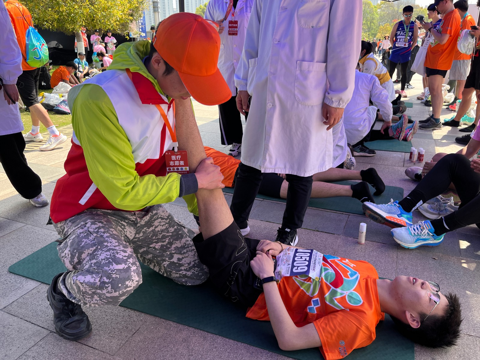 跑友们奔跑在春和景明、万物生长的江宁,而志愿者、医疗救护等工作人员也在倾力陪伴大家,每个参与者都用自己的方式完成了这场马拉松。来自江宁区10名应急救护培训师和120名金陵科技学院红十字救护员,也担当着医疗志愿者的身份,成为了此次半马赛场上一道靓丽的风景线。