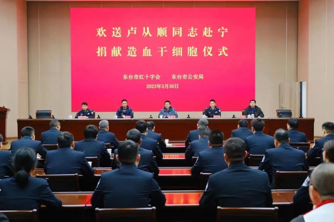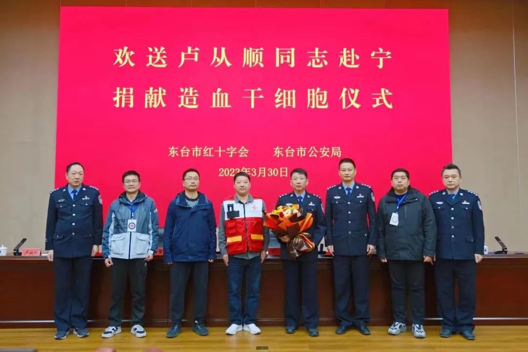 3月30日,市红十字会联合市公安局举办卢从顺同志赴宁捐献造血干细胞欢送仪式。