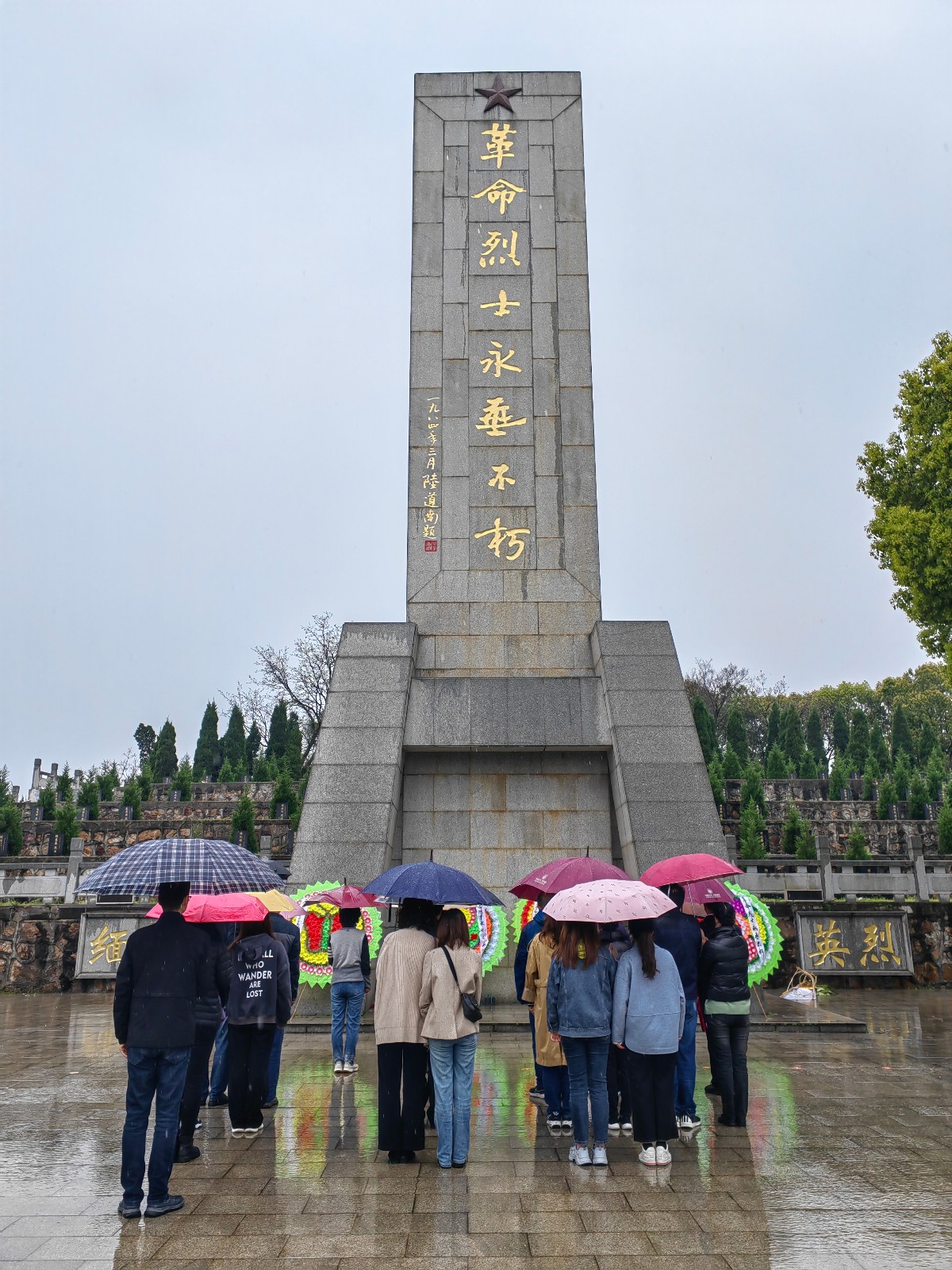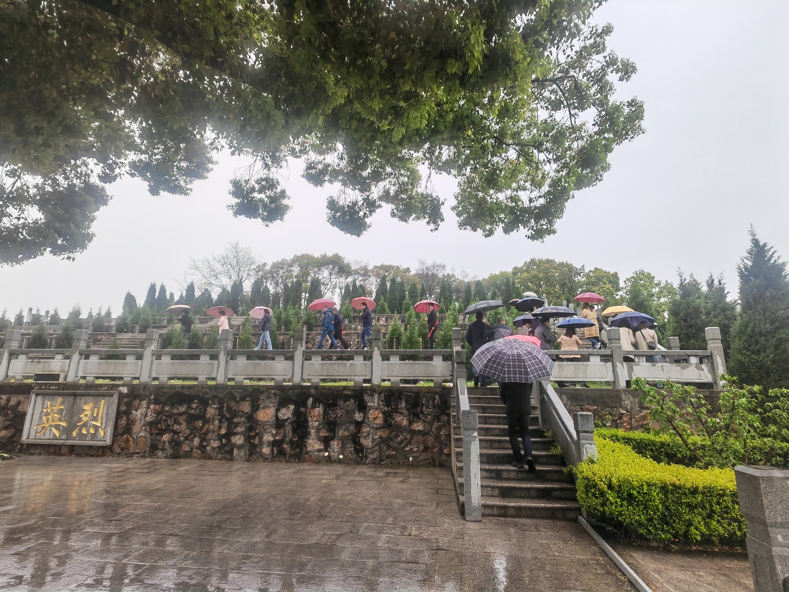 活动现场,在烈士纪念碑前,全体党员冒雨肃立,怀着崇敬的心情向烈士默哀。党员代表向烈士敬献了花圈,并向革命烈士三鞠躬。然后,大家拾级而上,怀着对革命先烈们无比的敬意和无限的哀思缓步前行,走进陵园,缅怀革命先烈。