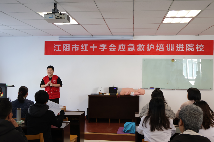 应急救护培训进校园一直是“澄救百千万”应急救护培训三年行动计划的重要一环。开展“救在身边•校园守护”行动是推进学校红十字青少年工作,保护师生生命安全的有效途径。为此,江阴市红十字会于4月2日上午,在江阴职业技术学院开展初级救护员培训,学院体育老师、校医、班主任、辅导员等30名重点岗位人员参加培训。