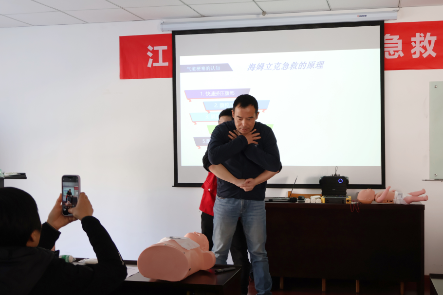 本次培训内容包括理论知识讲解、现场模拟演练、实践操作考核等环节。江阴市红十字应急救护培训师资向参加培训的学员传授心肺复苏、创伤救护、气道异物梗阻急救法和AED使用等应急救护技能,并进行示范。为确保此次培训高质高效,现场进行了互动教学,老师对学员们在操作过程中出现的错误动作逐一指正,确保每个动作做到准确、到位,让学员们在紧急关头能进行正确施救。