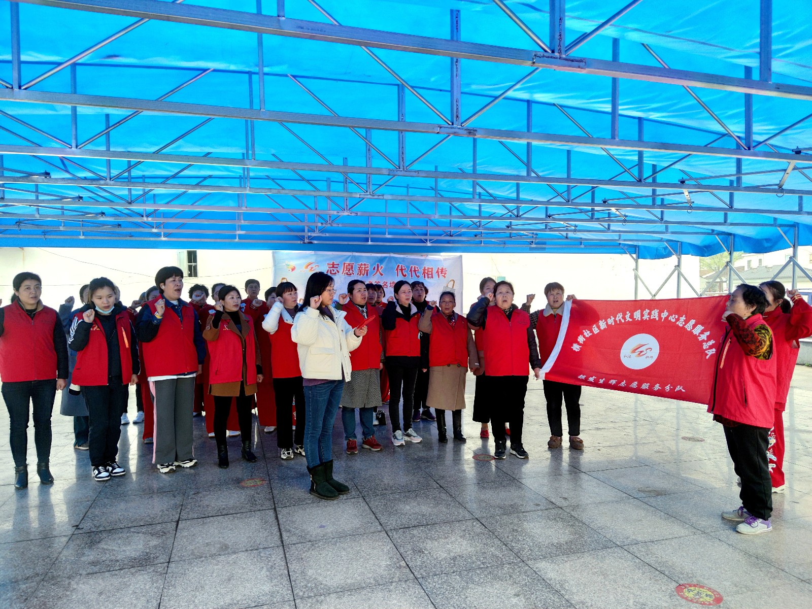 活动一开始,社区妇女主任杨岚介绍了社区“银发生辉”志愿服务队整体情况。横街社区银发生辉志愿服务队主要成员除了5位退休党员以外,还有“荷风细雨余热亦生辉”横街社区文体娱乐项目中的20位低龄老人,他们从受助者,成为了助人者。在过去一年,他们弘扬“用爱心传承文明,用真情奉献社会”的志愿服务精神,不忘初心献余热,彰显银发新风采。在社区工作人员的领誓下,所有志愿者握紧右拳,用最响亮、最坚定、最热情的声音宣读志愿者誓词,“我志愿成为一名光荣的志愿者,尽己所能,不计报酬……”宣誓声响彻整个广场,表达着银发志愿者为居民服务的初心和决心。