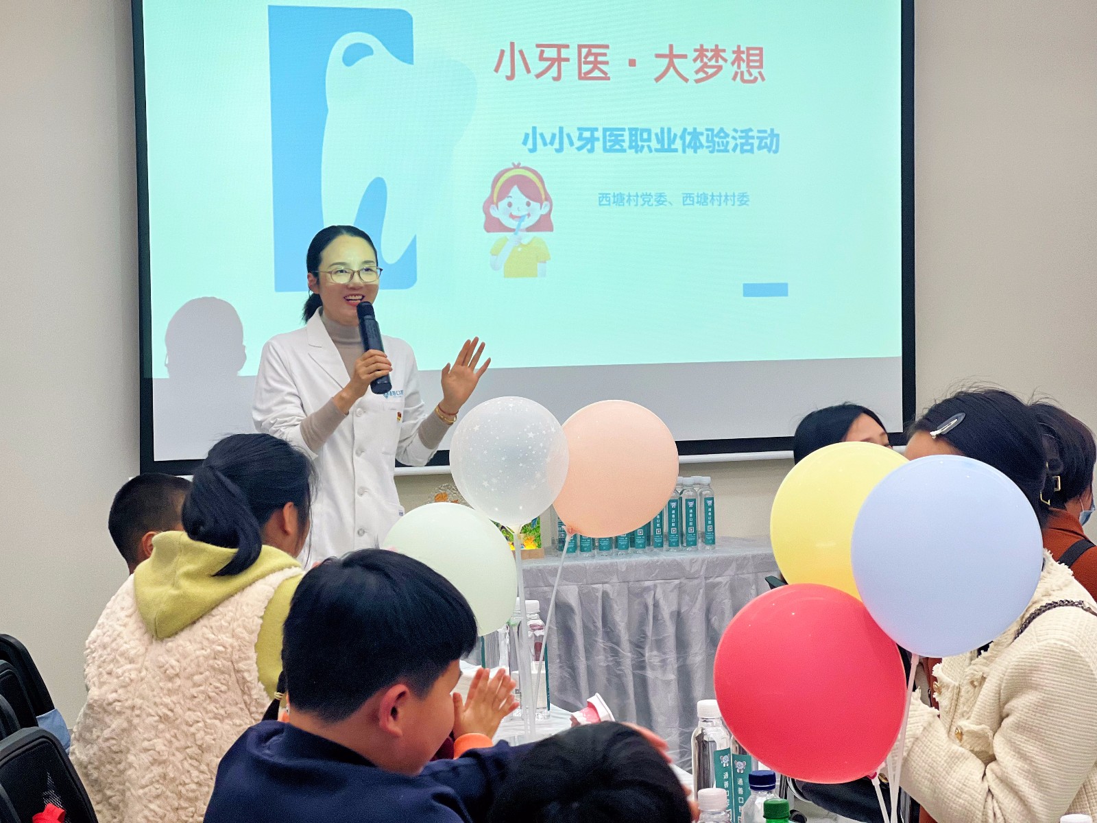为了丰富村民群众的业余生活,在世界口腔健康日来临之际,近日,惠山区前洲街道西塘村红十字会于新时代文明实践站为村内的孩子们开展了“童心护牙我先行”——“小小牙医”职业体验亲子活动。