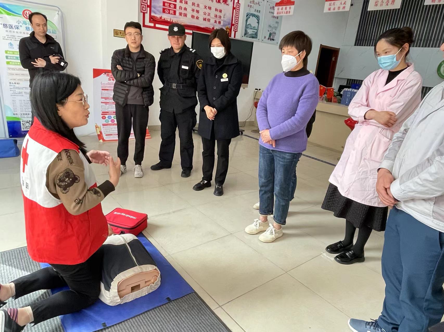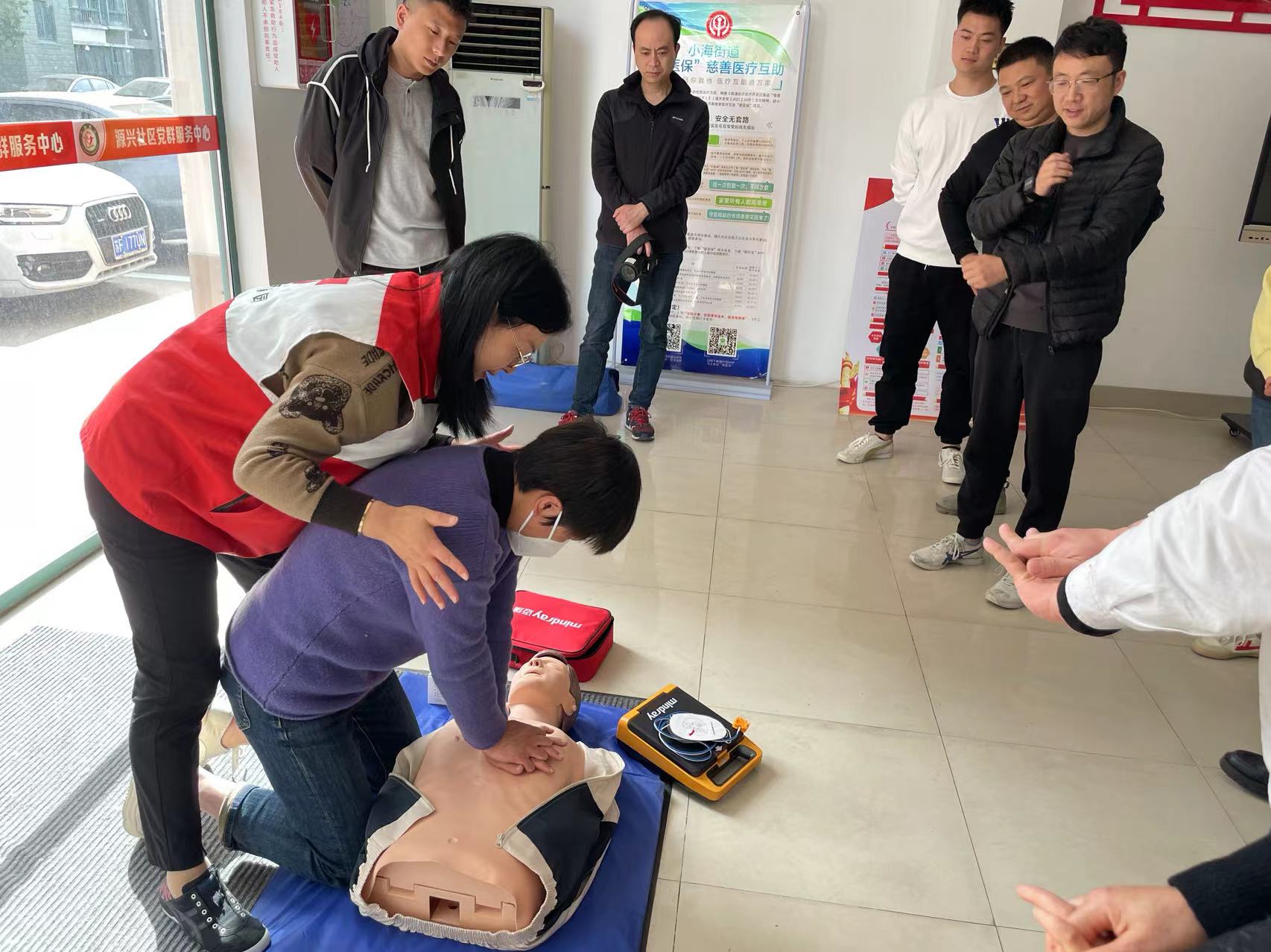 为进一步加强生命健康教育,提高群众应急救护水平,在最有效的“黄金四分钟”内实施正确抢救,挽救生命。区红会救护师资王锦花为源兴社区博爱家园的工作人员、保安、楼道组长等人群带去了一场别样的救护课堂。