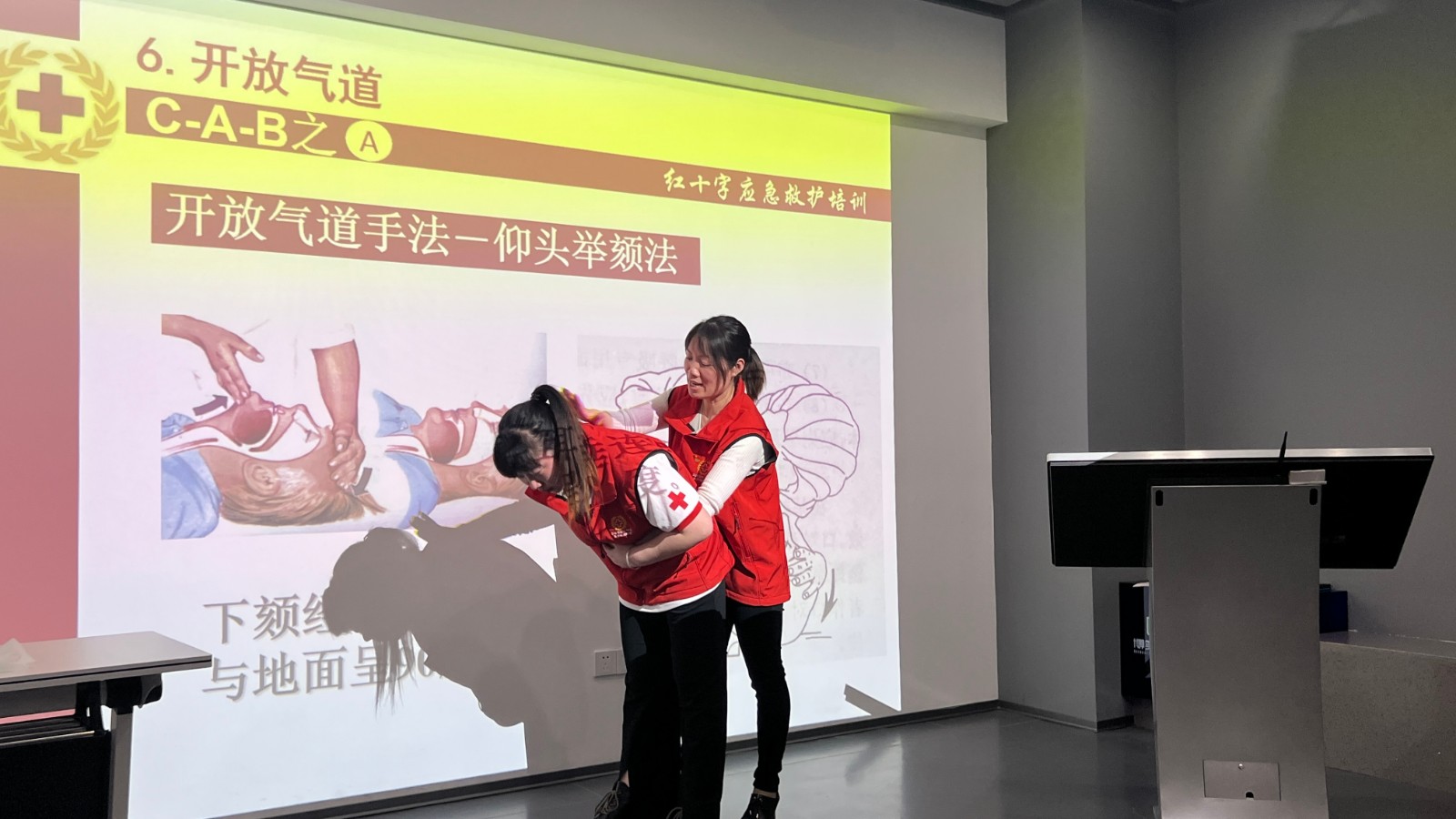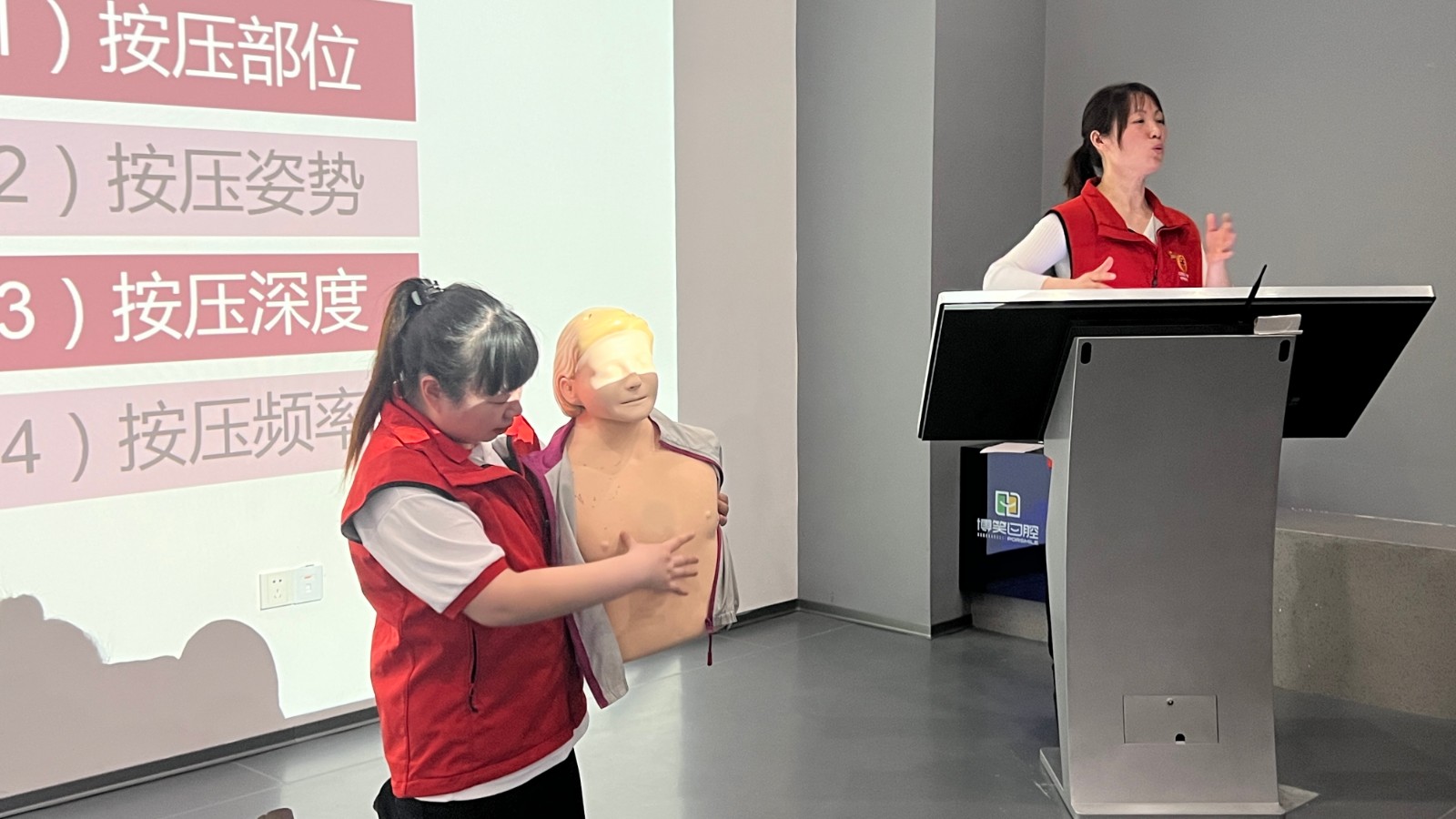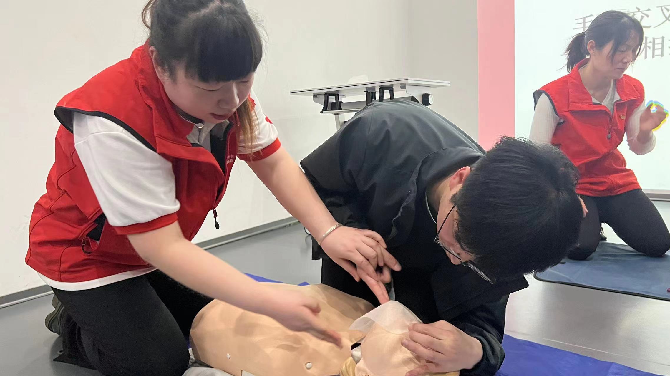 4月12日,亭湖区红十字会在盐城博笑口腔门诊开展应急救护技能培训。
