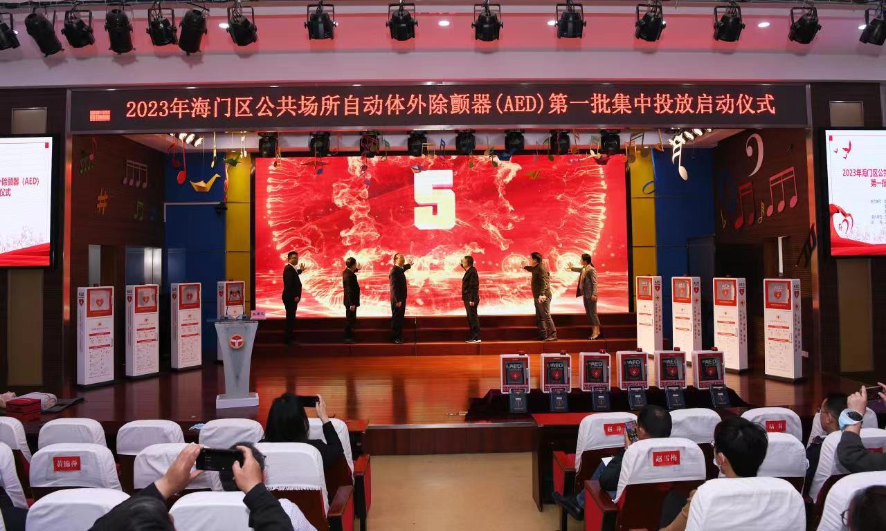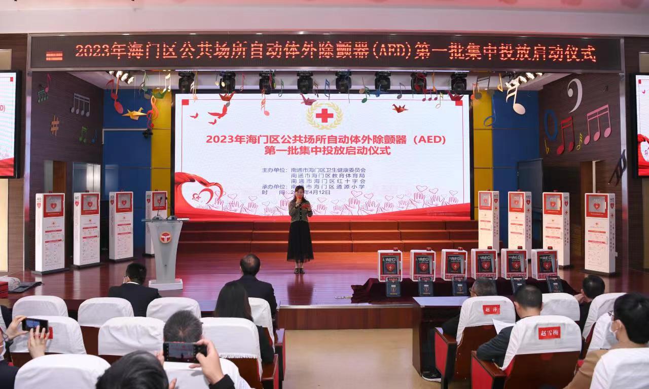 4月12日,2023年海门区公共场所自动体外除颤器(AED)第一批集中投放启动仪式在通源小学举行。部分人大代表、政协委员,区卫健委、区教体局、部分医疗机构相关领导以及42所中小学工作人员参加活动。随着42所中小学、区图书馆、海门大剧院、大有境综合体等场所集中投放自动体外除颤器(AED),我区急救水平和安全保障能力将进一步提升。