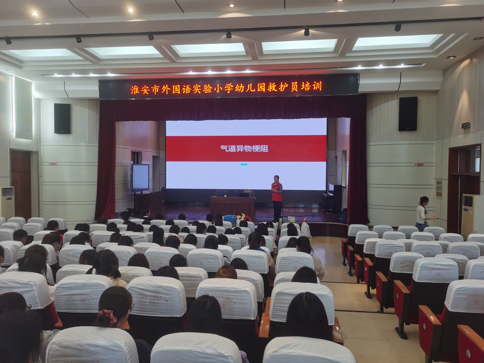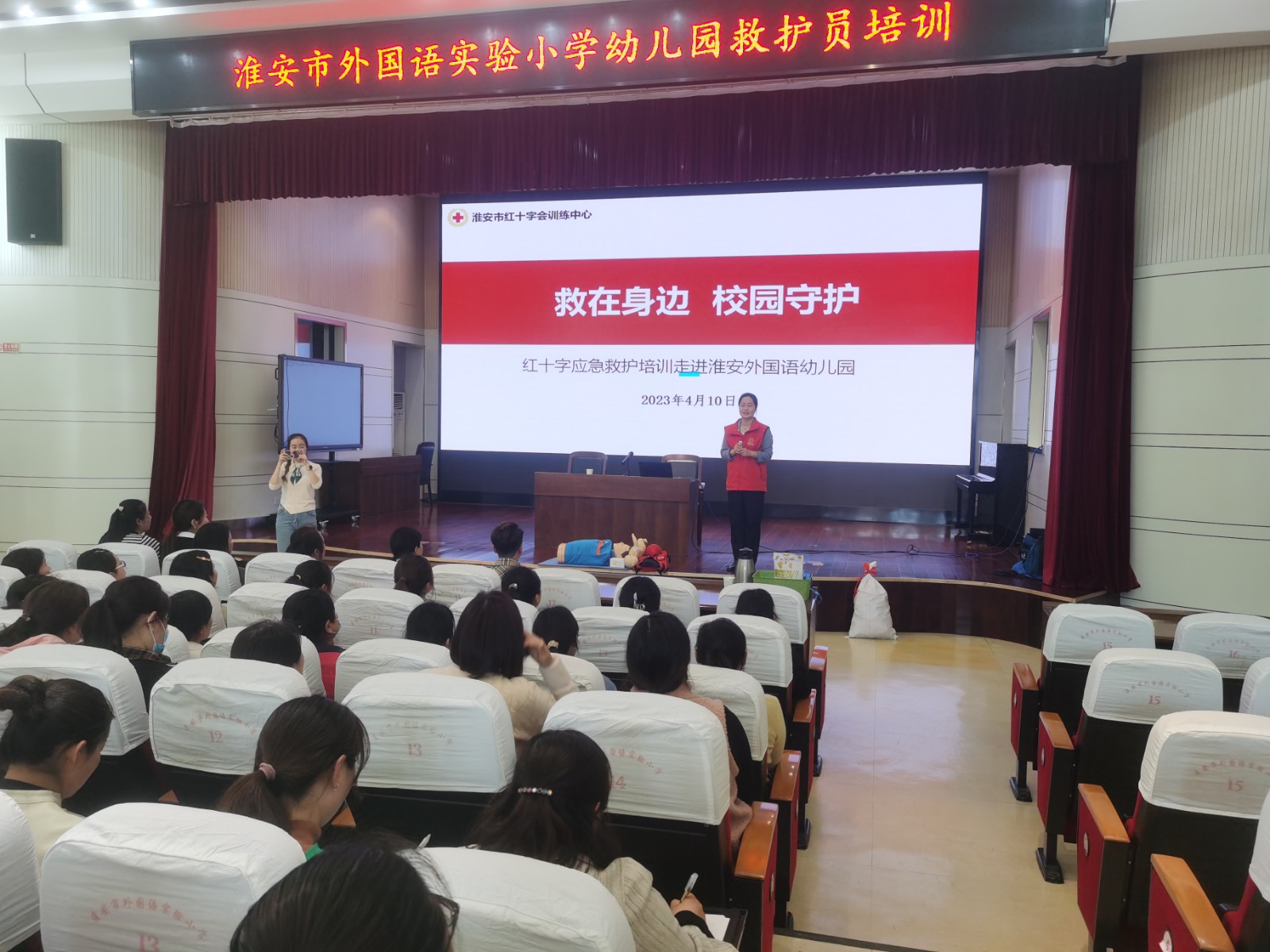 为了更好的提升提升幼儿园老师面对突发状况的急救能力,4月13,清江浦区红十字会曹玲玲老师老师来到外国语实验幼儿园,为学校50名老师进行初级救护员培训。