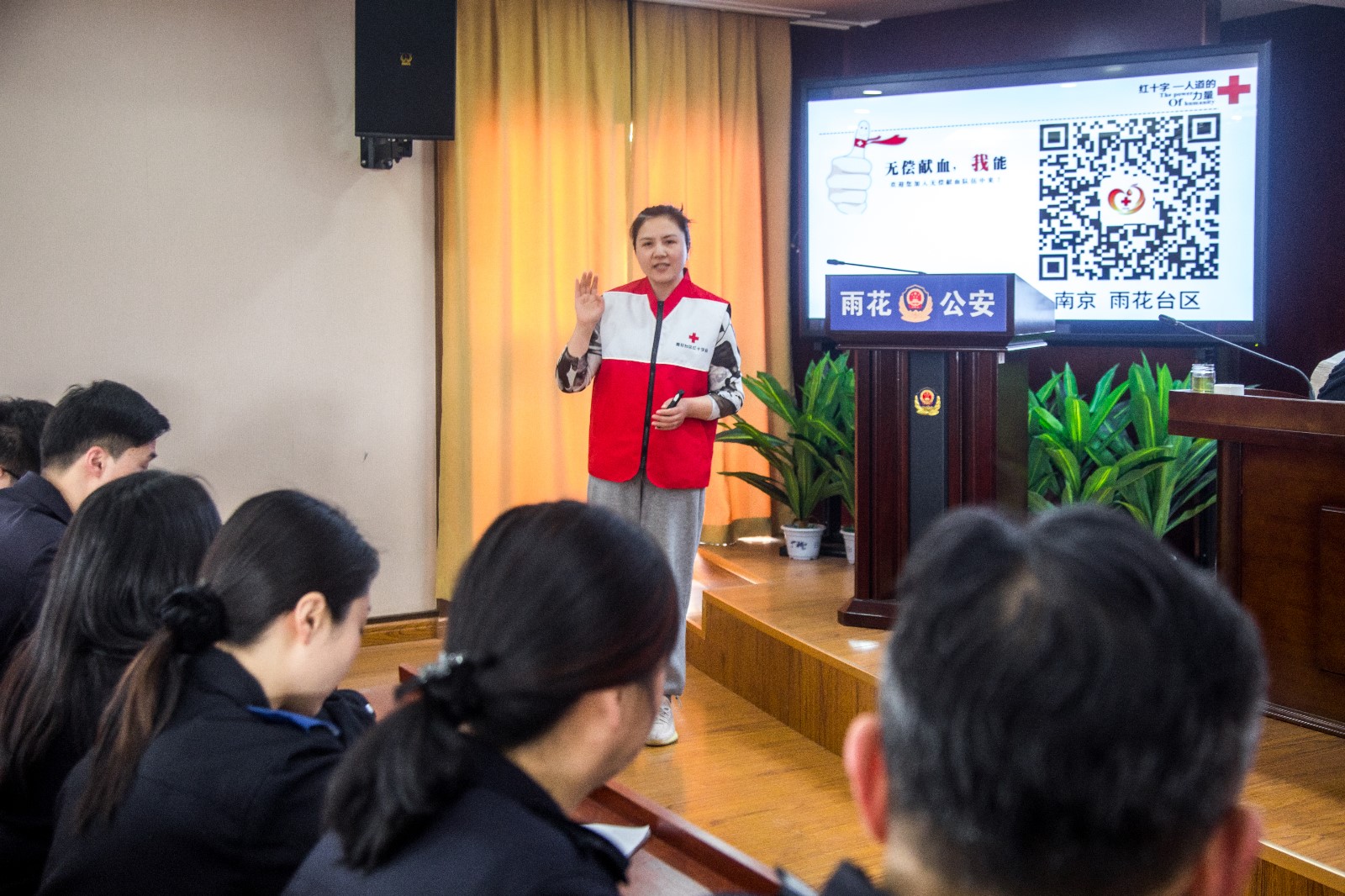 4月14日下午,雨花台区红十字会组织师资力量专门为雨花台区公安分局的干警们开展CPR+AED持证救护员培训。