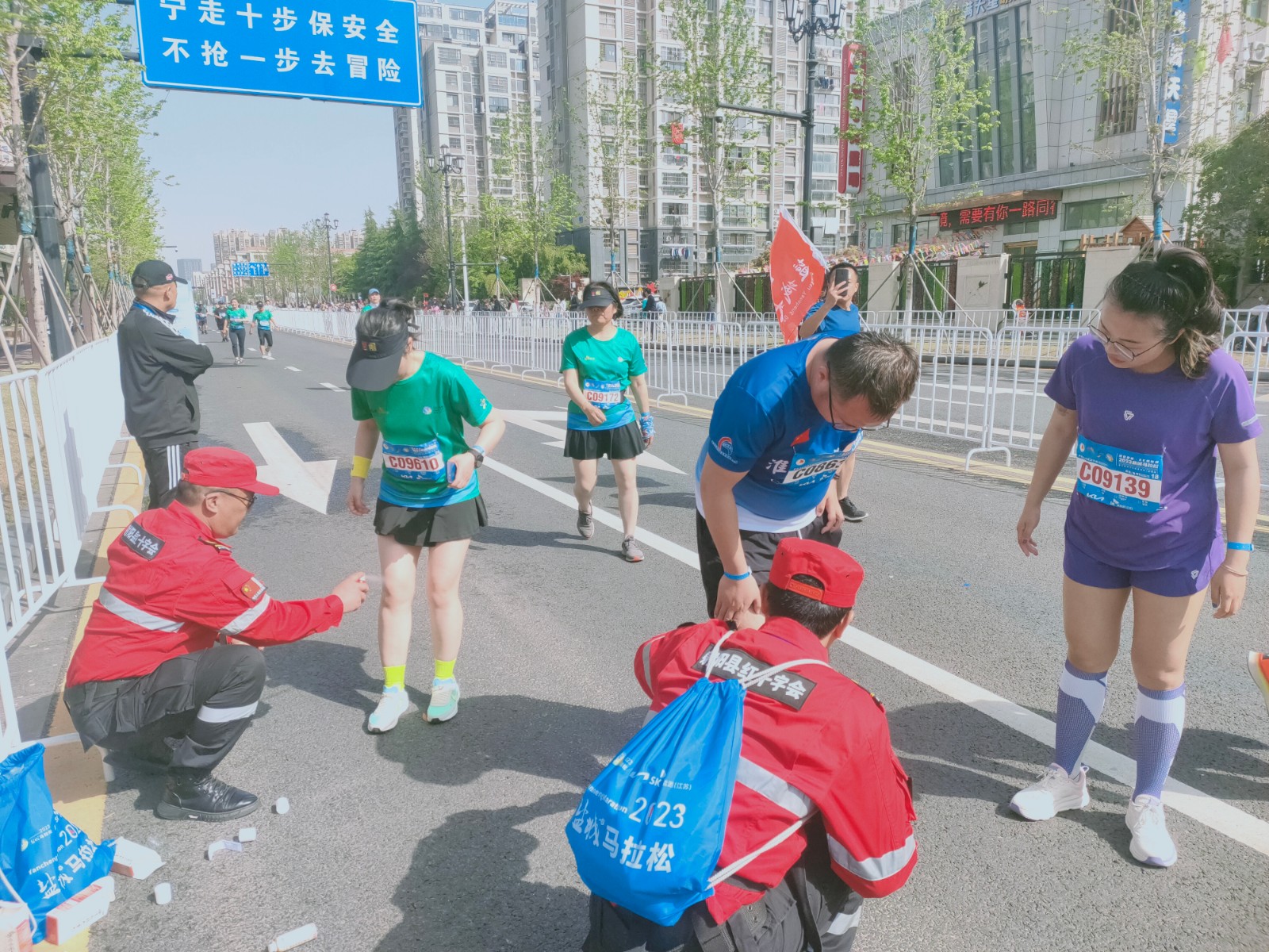 比赛当天,志愿者们全心投入、坚守岗位、积极应对,站好赛道救援岗位,成功处置肌肉扭伤、拉伤等突发事件,圆满完成了此次救援保障任务。