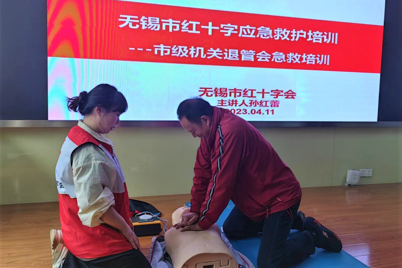 为关爱老年人生命健康,提高他们的生活品质,2023年4月11日,无锡市红十字会联合市级机关退管会为部分退休老同志开展了应急救护普及培训专场活动。