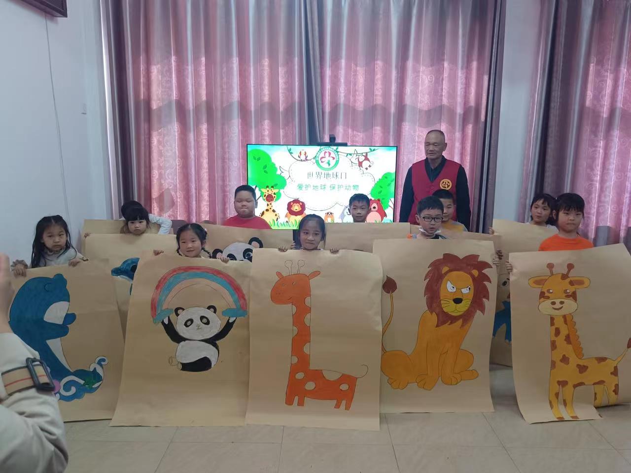 活动开始,红十字服务站志愿者首先为孩子们讲解了世界地球日的由来,孩子们耐心的倾听志愿者讲解。接着,和孩子们互动,询问孩子们我们国家有多少民族,都有哪些民族,大家都如何保护地球,又能为地球做些什么。孩子们高举小手,踊跃表达了自已的想法和建议。世界地球日的宗旨是唤起人类爱护地球、地球是人类生存和发展的家园,志愿者通过PPT让小朋友们认识更多的野生动物,并讲解到如何保护濒临灭绝的野生动物,明白“保护地球”的重要性。