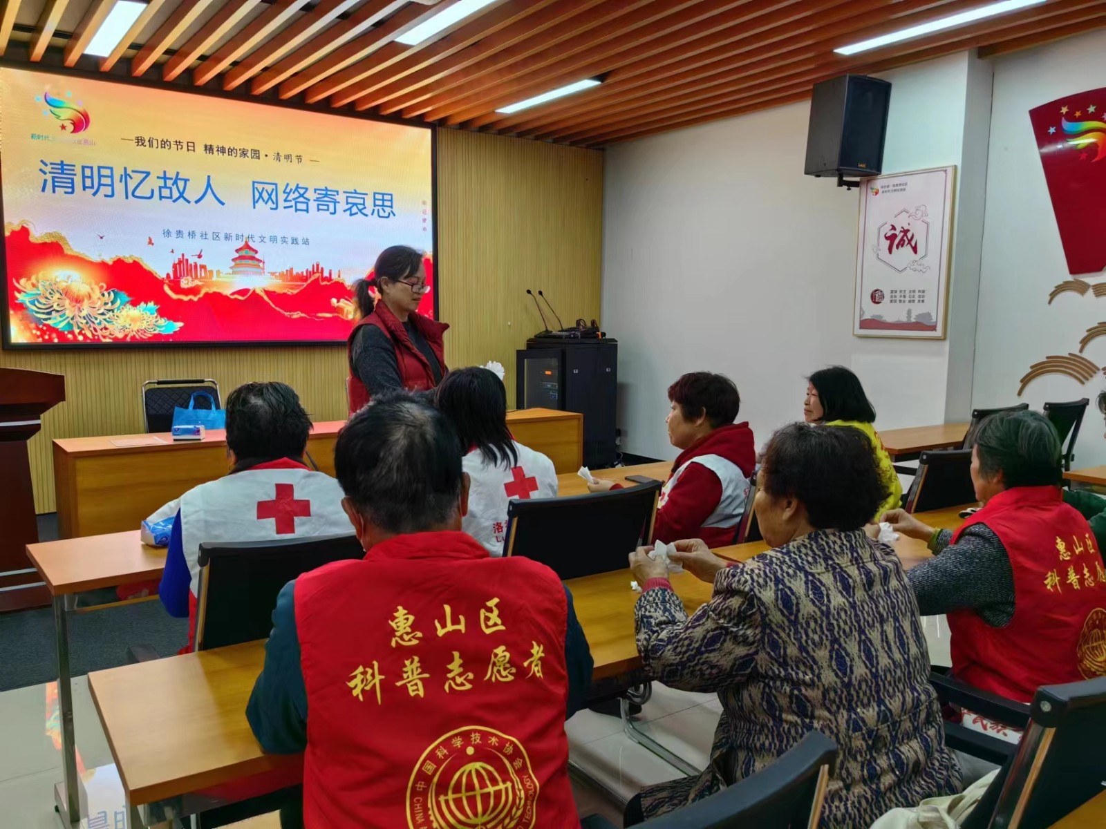 为持续推进移风易俗工作,传播文明新风,营造健康、有序、绿色的良好祭祀氛围,4月4日,惠山区洛社镇徐贵桥社区新时代文明实践联合红十字开展“网络忆故人 白花寄哀思”主题文明实践活动。活动共由社区党员、志愿者、居民、遗体捐献者积极报名参与。