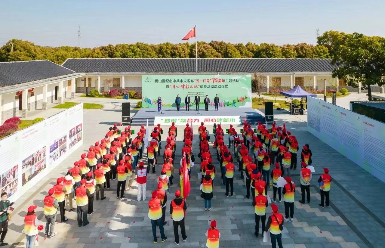 锡山区纪念 “五一口号”75周年主题活动暨“同心烽彩之旅”徒步活动启动仪式于近日在锡北镇顺利举行。锡北镇红十字会志愿者参与活动,呼吁人们关注和支持红十字工作,贡献爱心,积极为社会作贡献。
