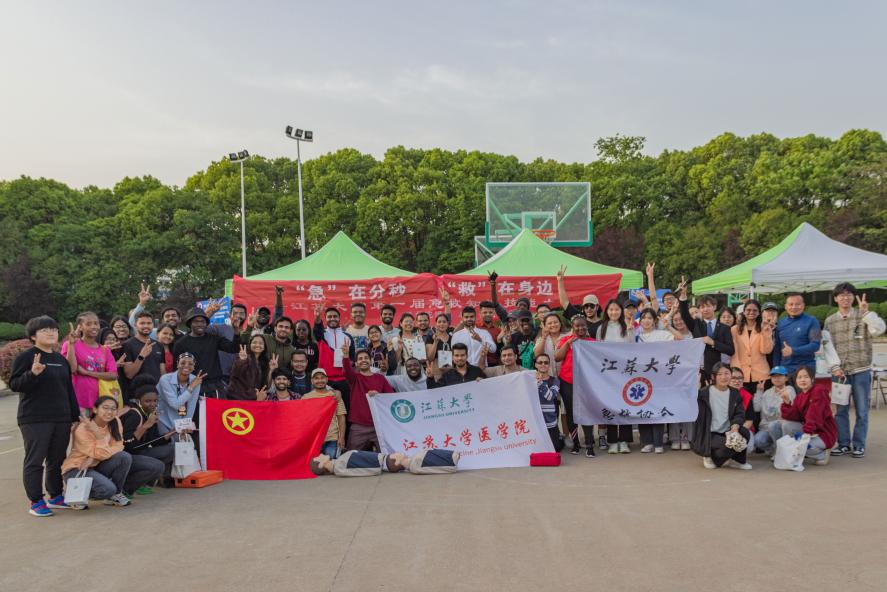 为推动急救知识与技能的普及,提高大学生的安全防范意识和应急救护能力,江苏大学急救协会在江苏大学医学院的指导下,协同江苏大学北固书院,于4月15日在学校西山灯光篮球场开展了“‘急’在分秒,‘救’在身边”——江苏大学急救协会第一届急救知识技能竞赛。本次竞赛分为徒手心肺复苏及AED(自动体外除颤仪)的使用、急救止血与包扎两部分。42支中外学生队伍参赛,170余名师生到场观摩,镇江市红十字会四位专家担任评委。