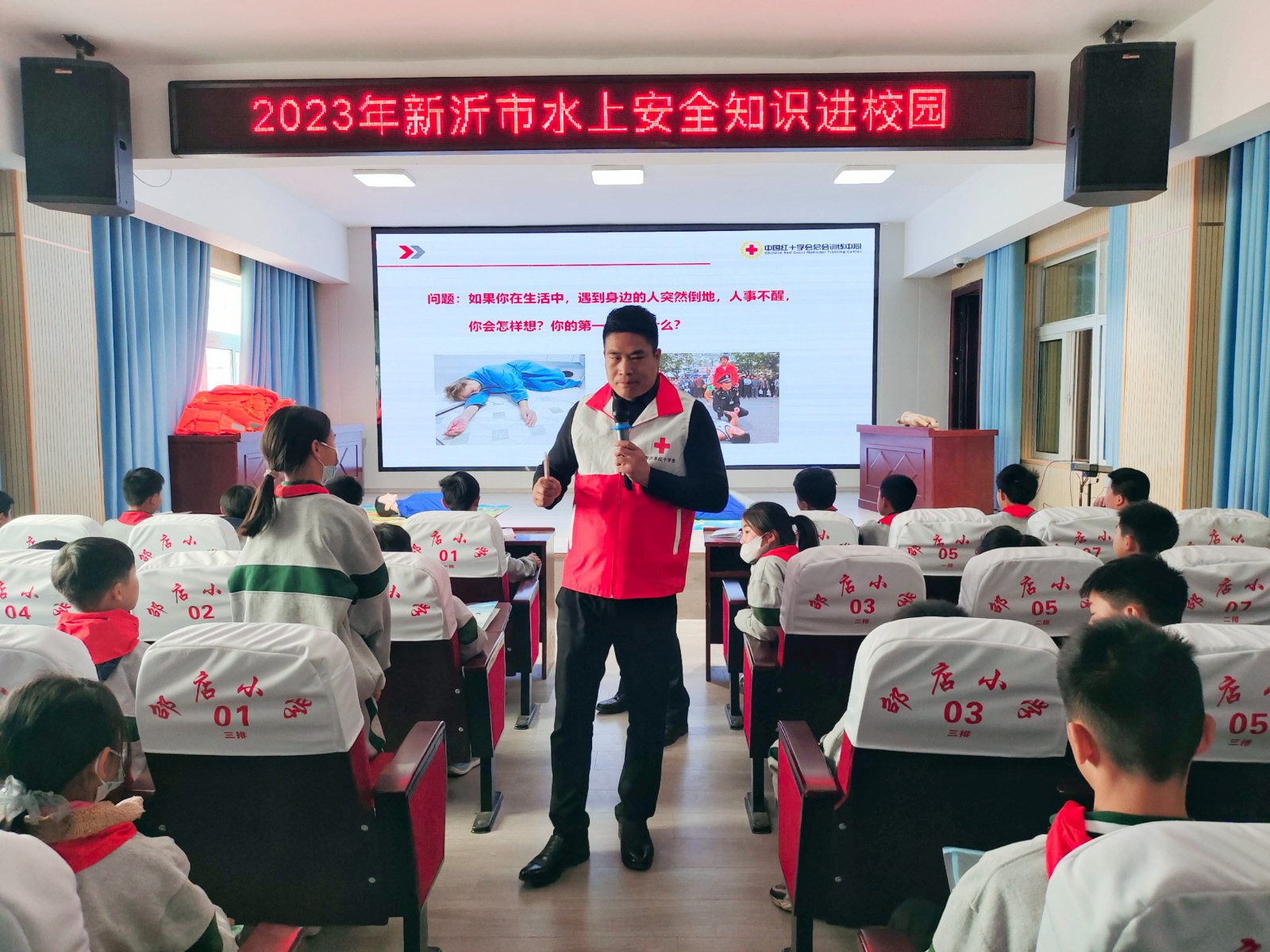 为持续提升中小学生水上安全意识和防护能力,保障学生生命安全,近日,新沂市红十字会联合市交通运输综合行政执法大队、市青年志愿者协会开展了水上安全知识进校园活动分别走进棋盘镇初级中学和邵店小学。