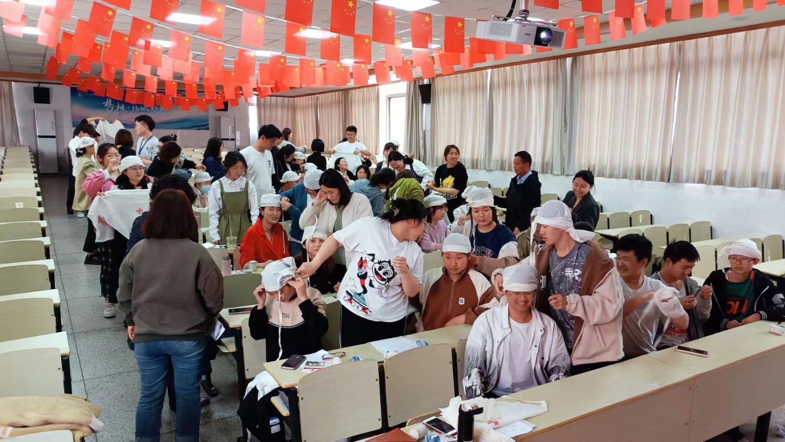活动中,孙老师用通俗易懂的语言为大家讲解了心肺复苏、伤口包扎处置等急救知识,并应用模型教具为学生们讲解了心肺复苏、海姆立克急救法操作过程。在讲课现场,学生们始终情绪高涨、积极主动,对急救知识表现出了极大的兴趣。学校负责人表示:“生命无小事,救护是关键”。本次活动对于同学们来说,是一堂不可或缺的“生命必修课”,不仅让同学们明白了健康和急救的重要性,更提高了急救意识和自救、互救能力。从心底敬畏生命,学会健康自护,保护自己健康成长。