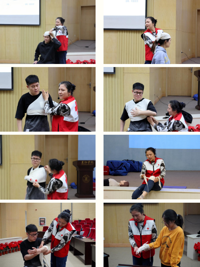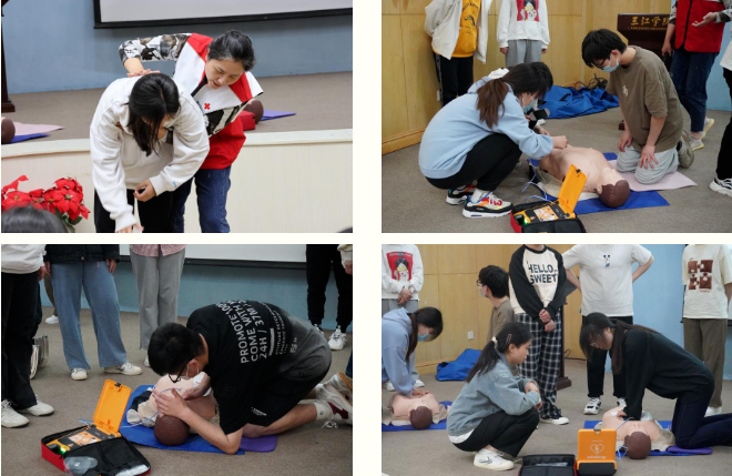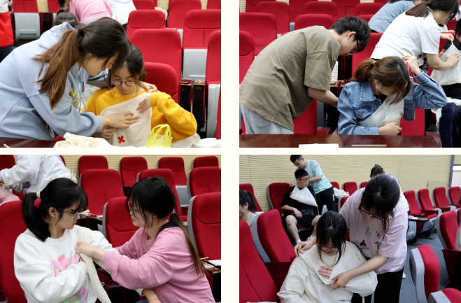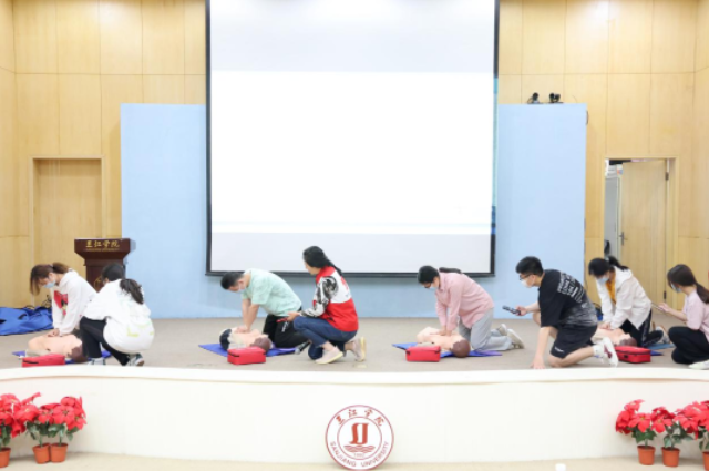 人人学急救,急救为人人。2023年4月20日,雨花台区红十字会的专职师资走进了三江学院,在学术报告厅对近30名大学生进行了应急救护理论培训与实际操作培训。专职师资刘静从创伤救护四项技术、CPR(心肺复苏)的操作、AED(自动体外除颤器)的使用以及气道异物梗阻的接触四个方面对大家的急救技能和急救知识进行培训。