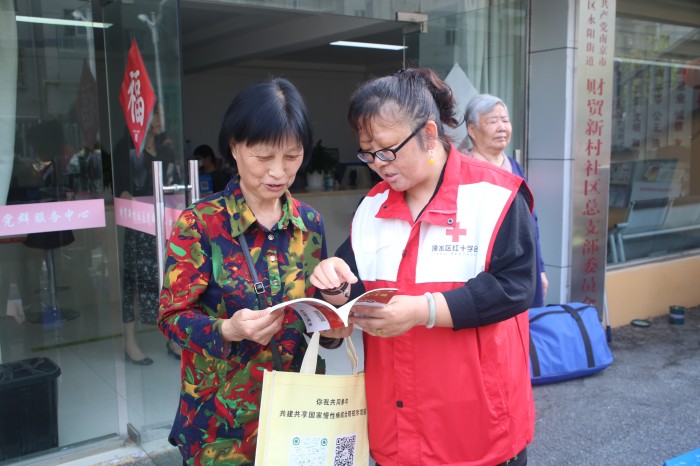 4月18日上午,溧水区红十字会联合区卫健委、永阳街道、总工会、计生协、疾控中心等多家医疗单位,在永阳街道财贸社区党群服务中心,开展“博爱送健康”暨2023年全国肿瘤防治宣传周活动。
