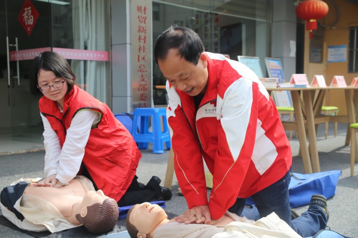 活动现场,区红十字会常务副会长刘晓萍带领工作人员及志愿者现场发放安全宣传手册,开展应急救援培训,结合日常生活中的案例向大家详细讲解了实施心肺复苏时判断意识、呼吸的方法。并规范示范了如何打开气道、实施胸外心脏按压和人工呼吸的动作要领等。培训老师演示后,现场居民进行实操训练,在老师的耐心指导下,大家掌握了心肺复苏的技巧。有居民在实践心肺复苏操作后说道:“这样的宣传活动有必要,真的很有必要,特别是年纪大的,真的有必要去关注一下。”
