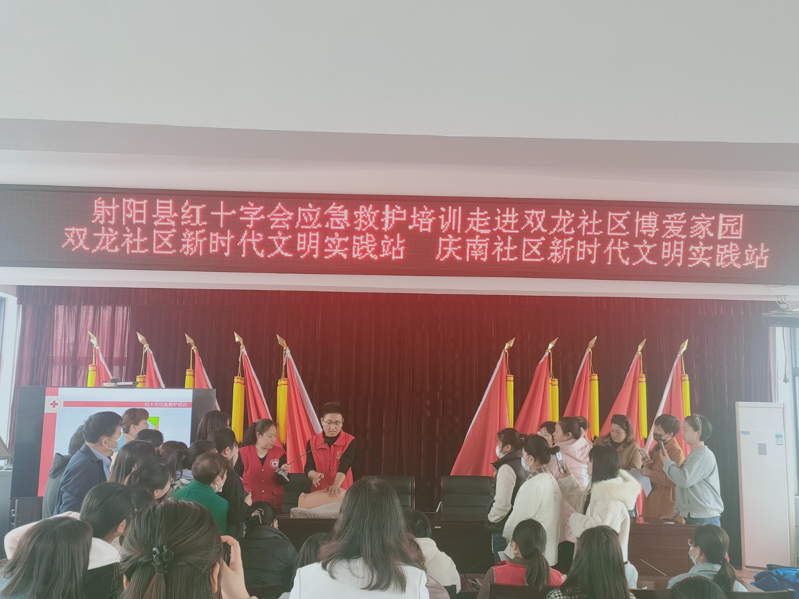 为推动应急救护知识的宣传普及,提高社区居民的自我保护意识和自救互救能力,射阳县红十字会走进双龙社区博爱家园开展应急救护培训,50多名网格员和居民参与。