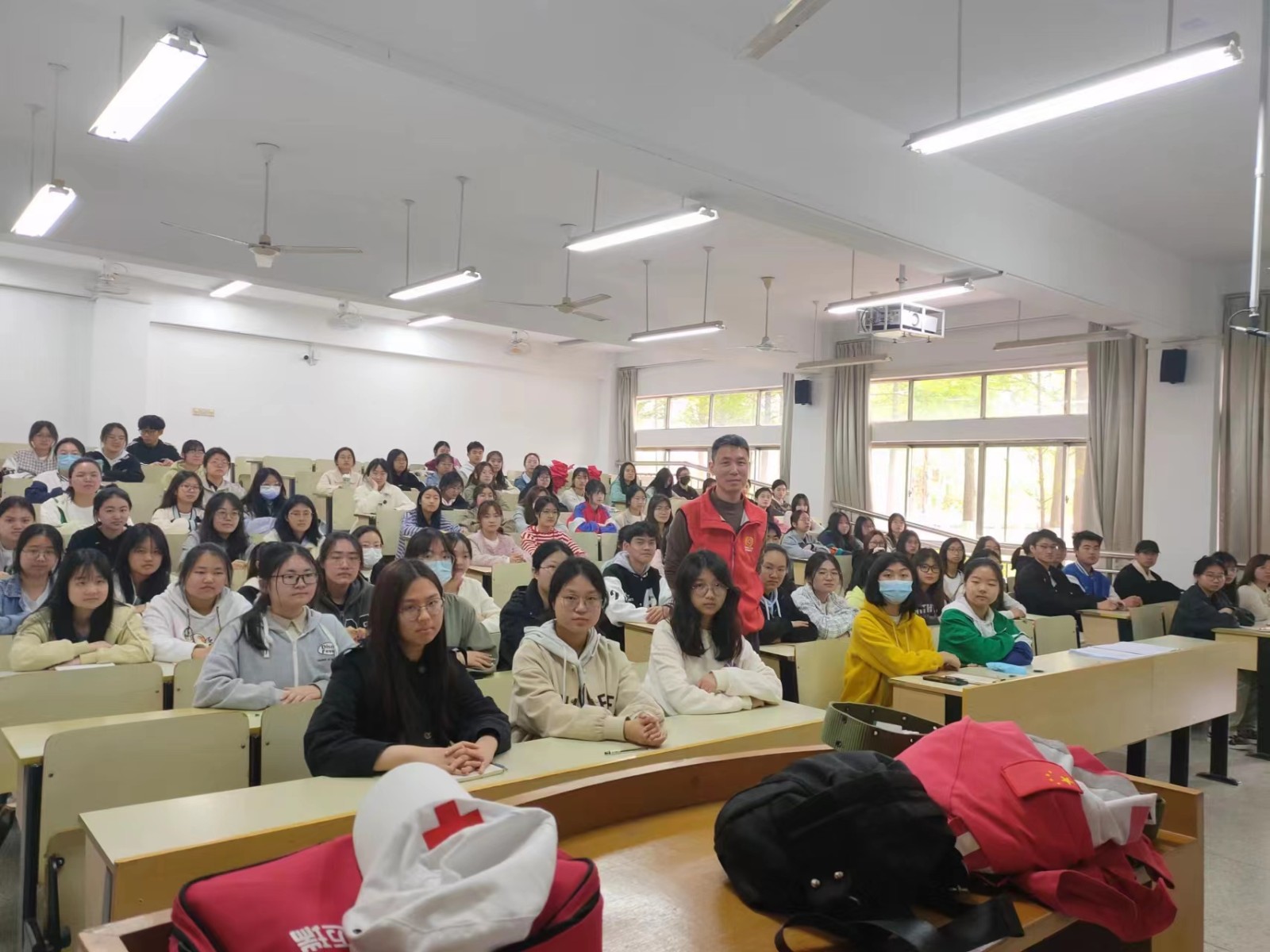 4月22日,宿城区红十字会流动急救公益大讲堂走进宿迁学院。