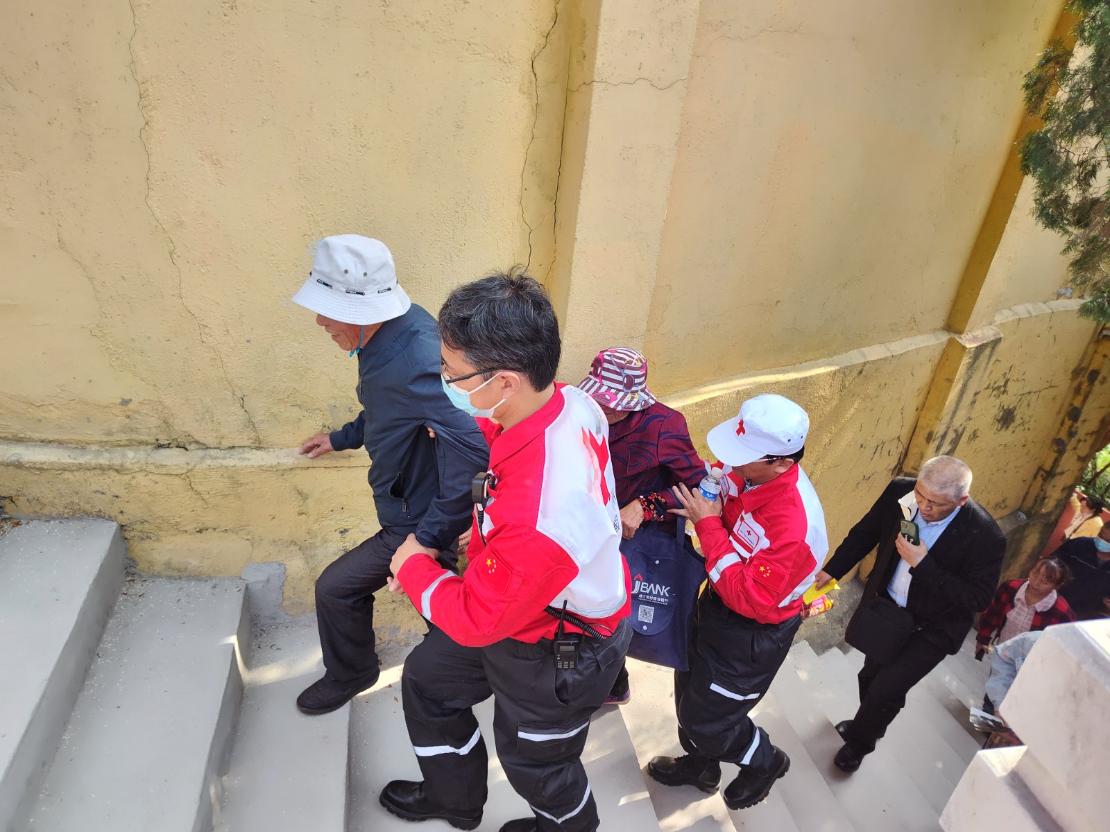 保障中,有老人问救援队队长姚飞:“你们身上的红+号是啥意思?”“你加我,我们能确保你登上最后一个台阶,安全的进庙烧香!”正是有他们默默无闻的坚守我们的生命安全才得以保障。以后市红十字救援队还会继续帮助群众,牢记红十字精神,将奉献的种子播撒在这片大地。
