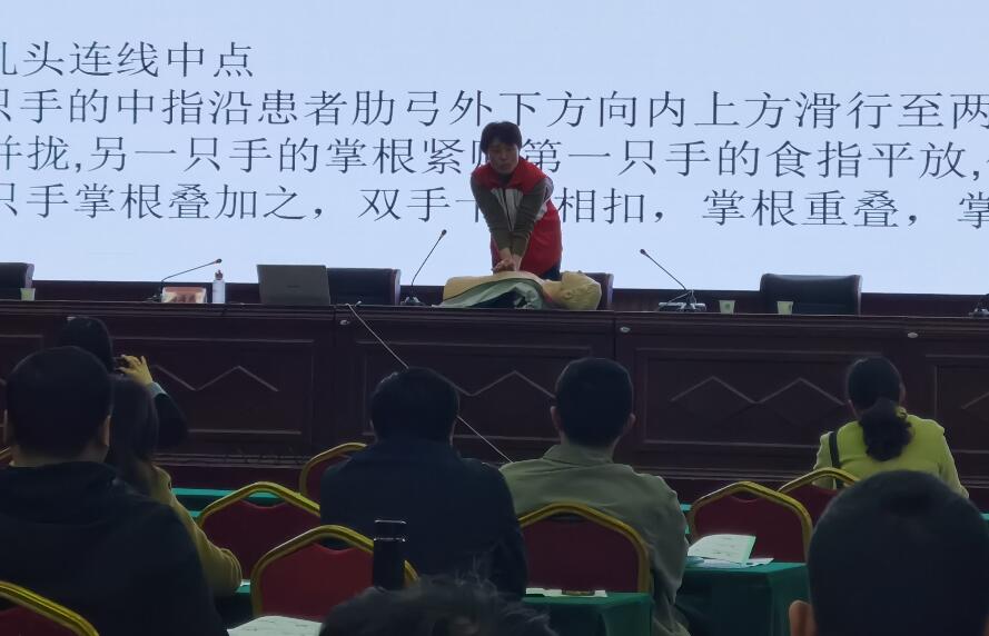 4月24日上午,县红会、洋口镇红会组织开展了应急救护普及性培训,为洋口镇84家企业的一百七十多名企业负责人及安全员培训讲解了心肺复苏和AED使用等基本急救知识,增加了培训人员自救和他救的能力。