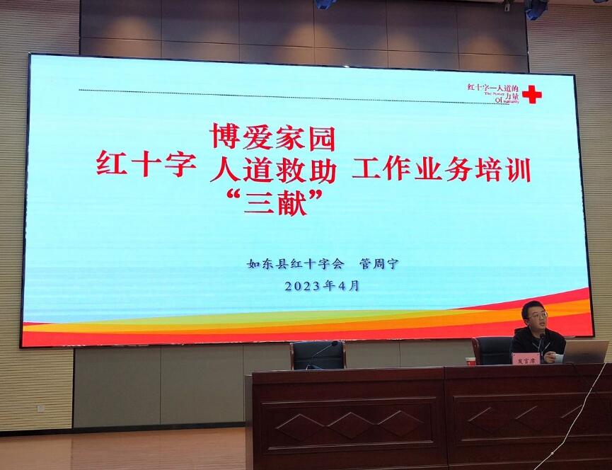 今年是全面贯彻落实党的二十大精神的开局之年。为切实强化党建带红建的引领作用,引导全体党员干部弘扬“四敢”精神,4月23日下午,如东县红十字会举办系统内党的二十大精神理论宣讲主题活动暨红十字业务培训会。县红十字会全体班子成员、工作人员、各镇(区、街道)红十字会秘书长、博爱家园负责同志共40余人参加了会议。