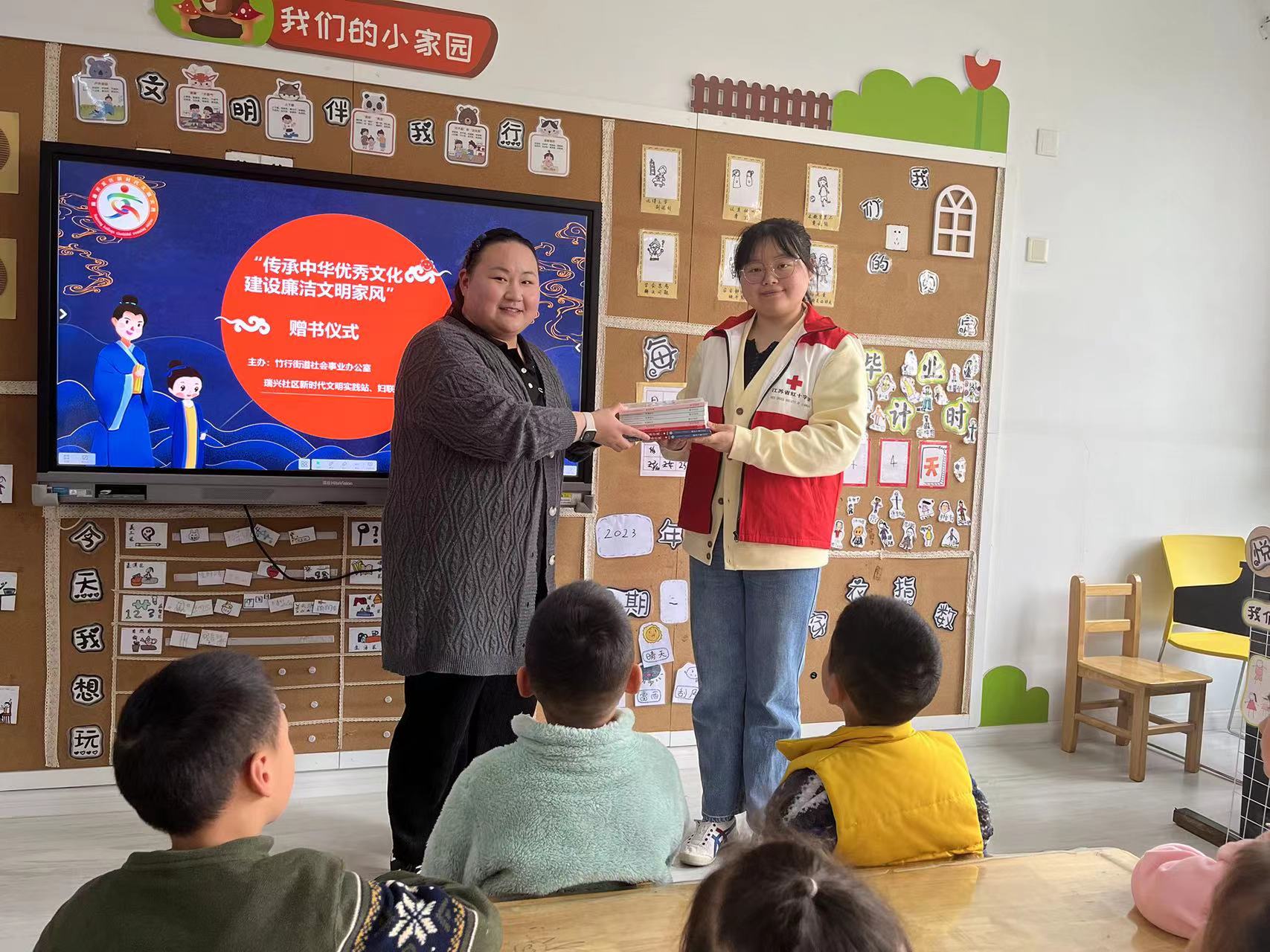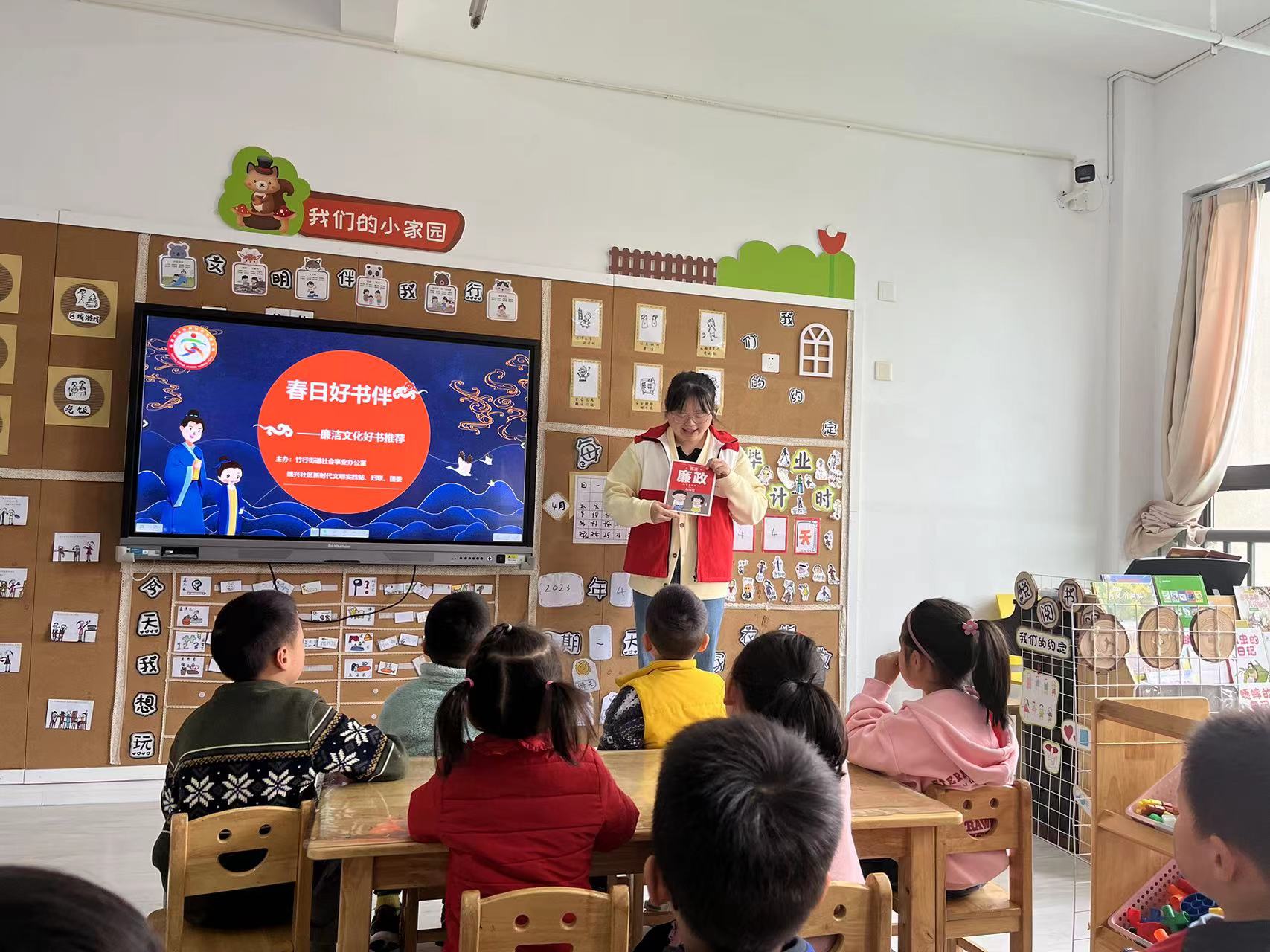 为进一步推进社区的廉洁文化进校园工作,营造崇廉尚廉的社区氛围,达到“教育一个孩子,带动一个家庭,影响整个社会”的效果,当天上午,瑞兴社区新时代文明实践站、红十字博爱家园、妇联、团委联合竹行中心幼儿园开展以“清风伴我行 廉洁文化进校园”为主题的活动。活动中,志愿者通过分享《清廉简约》、《修身齐家》、《弟子规》、《画说廉政—校园版》等书籍中的小故事,从古至今,从典型故事到身边小事进行讲解,对应该怎样面对生活中的“诱惑”,怎样学会对不良风气说不进行了详细阐述,通过廉政小故事引导孩子们建立起“勤以修身,俭以养德”的意识,在小朋友心中埋下清廉的种子。最后,志愿者向班级老师赠书,希望能够将廉洁教育在校园及家庭中不断延伸下去。