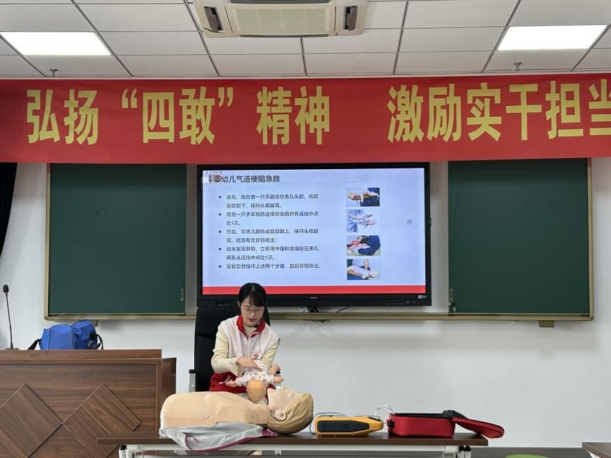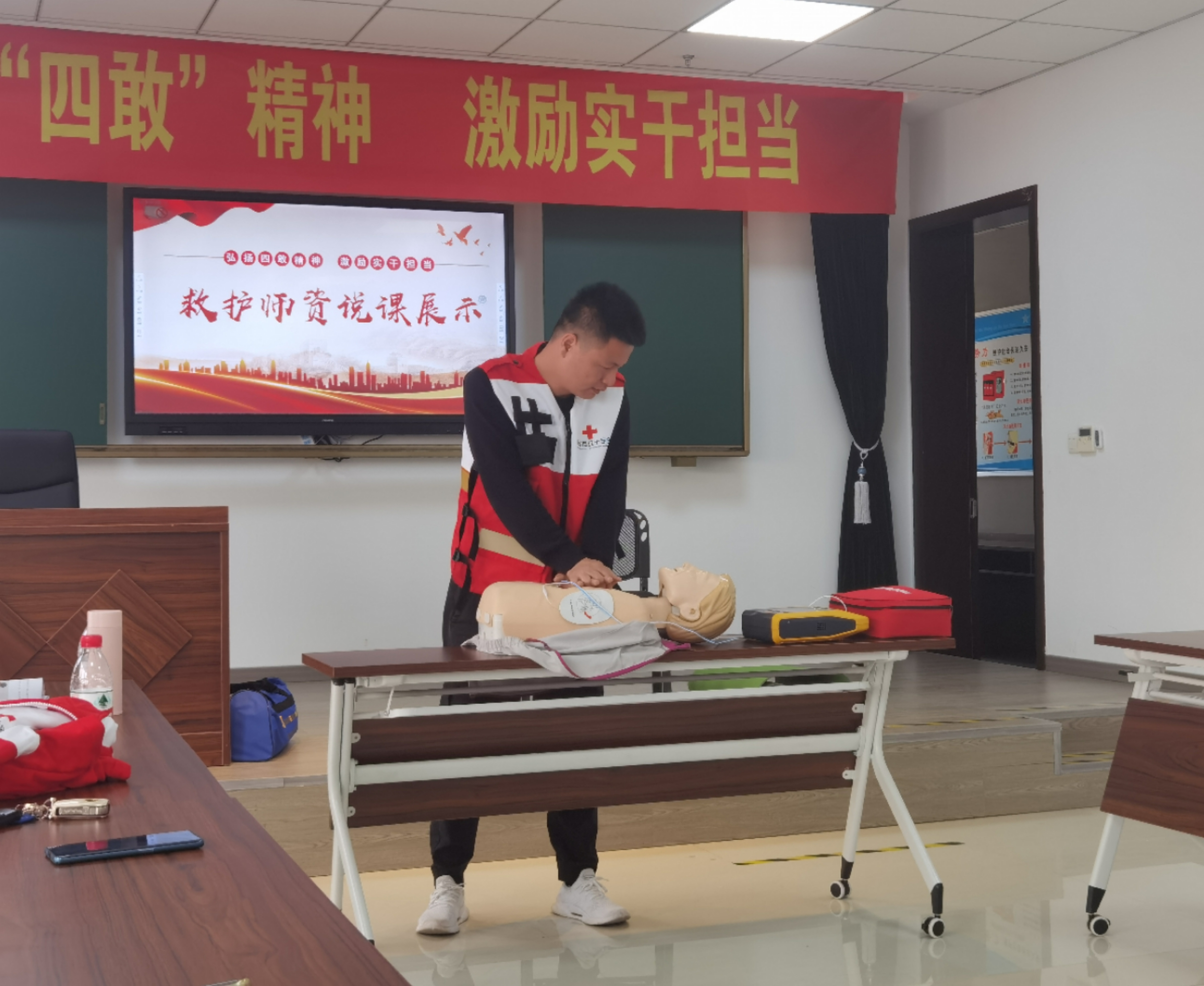 同台比拼 擦亮“敢为”鲜亮底色。红十字应急救护培训是助力“健康启东”的重要任务。为进一步推动师资能力素质提升,本次活动组织救护师资说课展示,红十字赈济救援队党员黄刚、市卫生进修学校黄丽丽等5名今年新参培的师资依次上台说课。他们通过PPT演示与理论讲解相结合的方式,引用身边的案例,生动形象地展示了心肺复苏、AED的使用、气道异物梗阻、止血包扎和常见急症等知识,讲解全面具体、生动形象。