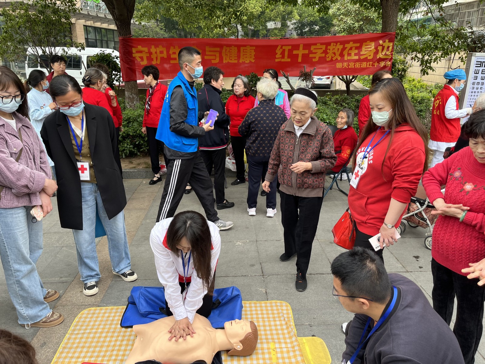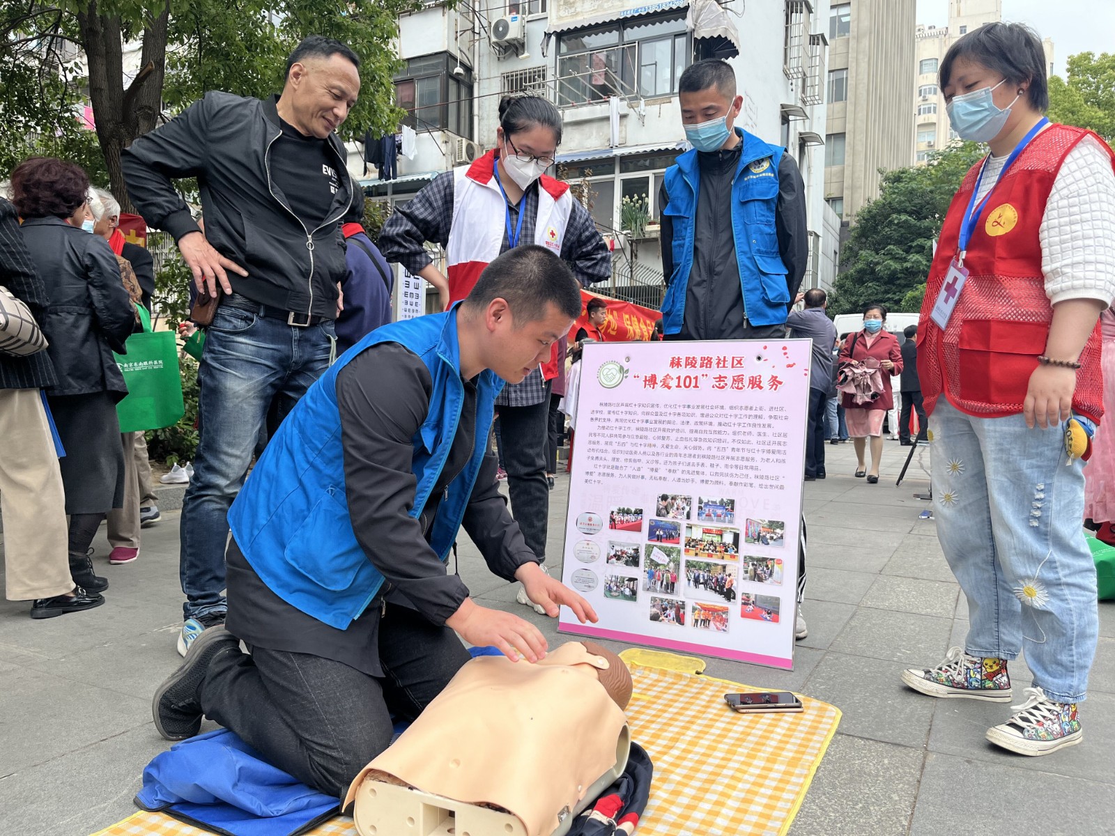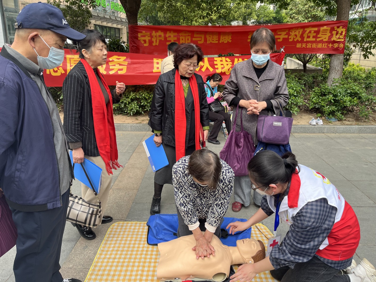 为了进一步普及应急救护常识,夯实防灾减灾基础,增强居民应对公共事件的应急处置能力,2023年4月28日,秦淮区朝天宫街道秣陵路社区“博爱101”志愿者服务队在中天荟广场开展了“守护生命与健康,红十字救在身边”急救理论讲解和实操演练。