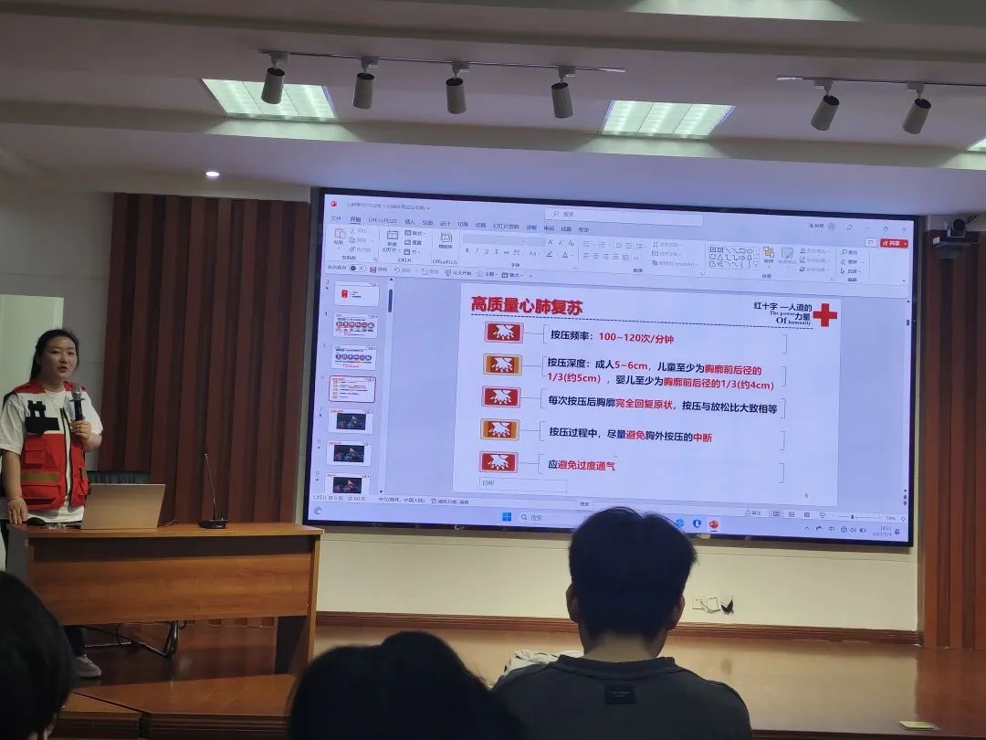 在活动互动环节,崇川区红十字会救护培训老师以防灾减灾、健康促进、红十字人道传播为主要内容为大家普及知识,着重讲解了心肺复苏、AED使用、气道异物梗阻等现场急救知识,红十字志愿者与现场观众互动交流,整个活动气氛热烈、紧凑,充分发挥了红十字人在传播人道理念、保护人的生命安全和身体健康、培养人道情怀和实践能力,促进学生德、智、体、美、劳全面发展上的独特作用。