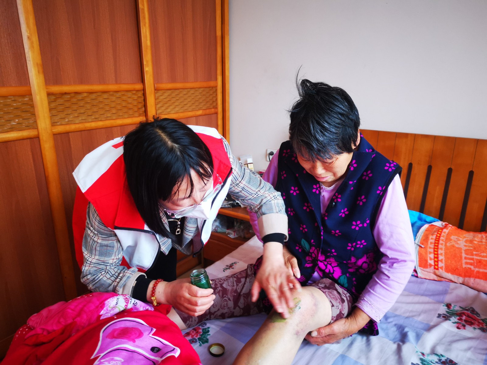 5月6日上午万安村博爱家园组织广大老年人收看博爱送健康网络直播“春夏季常见病预防”"糖尿病三级预防"等内容,除此以外博爱家园志愿者还带上礼品和伤药膏前去看望车祸残疾老人施素琴,帮她涂药膏并为她洗涮碗筷和换洗衣服。志愿者暖心的举动深深感动了她,她一再表衷肠,还是共产党好,还是共产党领导下的干部群众素养好。