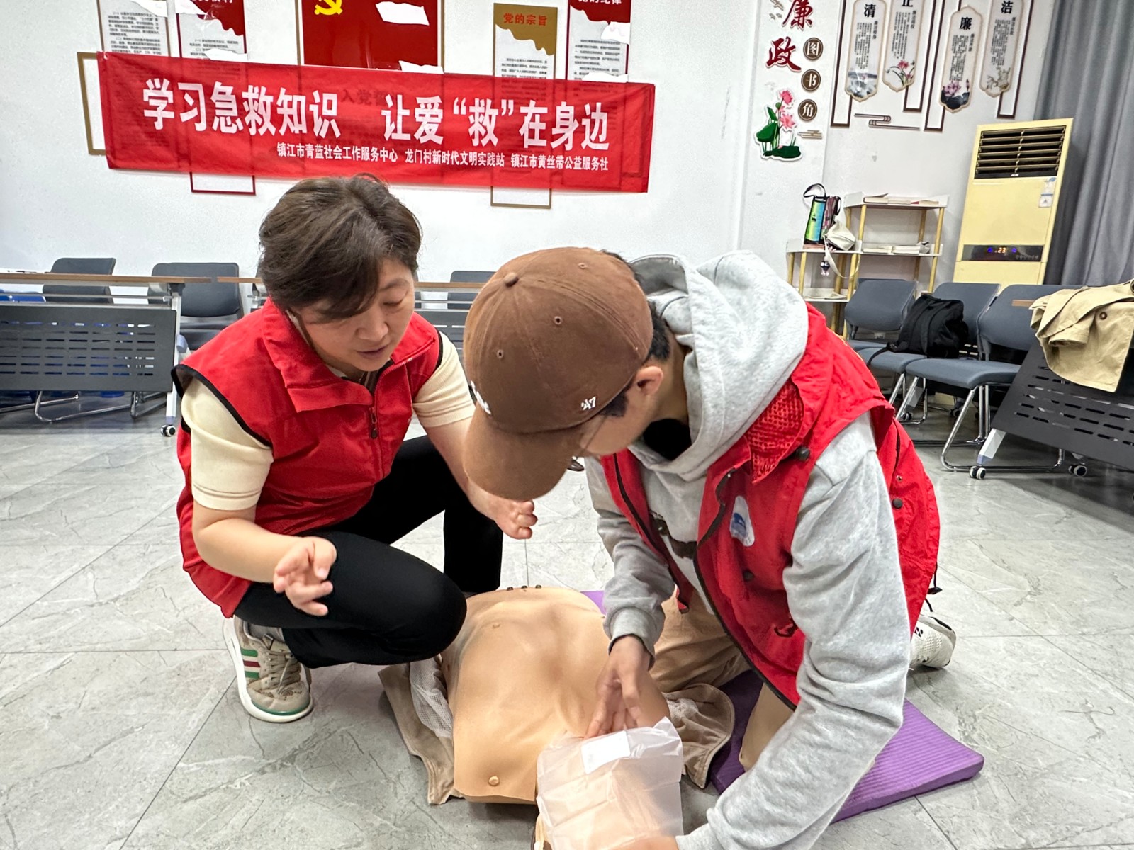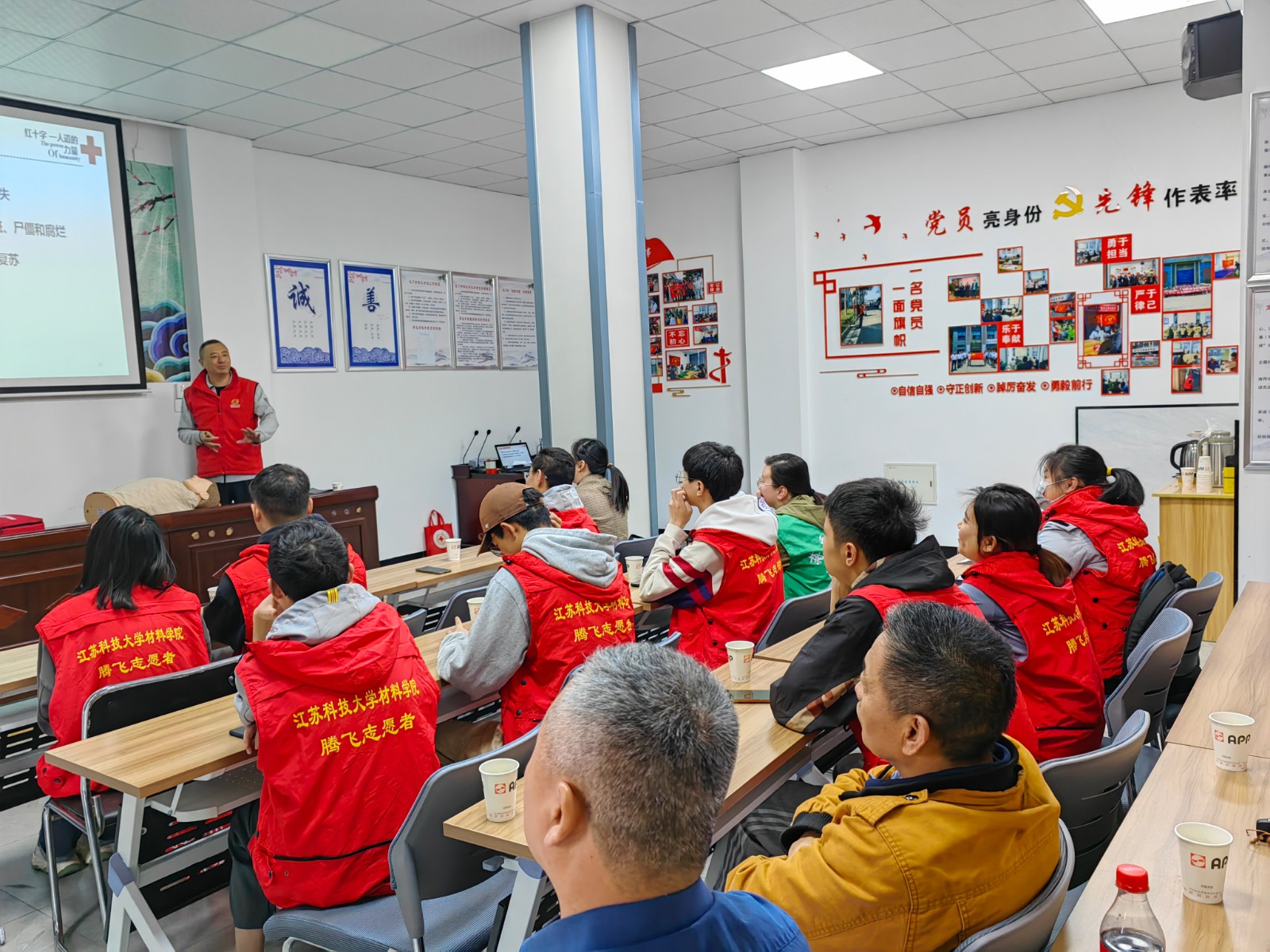 为有效提高群众对全民健康和急救知识的认识,安全、有序、科学、高效推动应急救援和救护工作,在第76个“世界红十字日”到来前夕,黄丝带公益服务社救护培训走进蒋桥街道龙门村新时代文明实践站,为20余名社区工作人员和志愿者进行了一场CPR+AED持证培训。