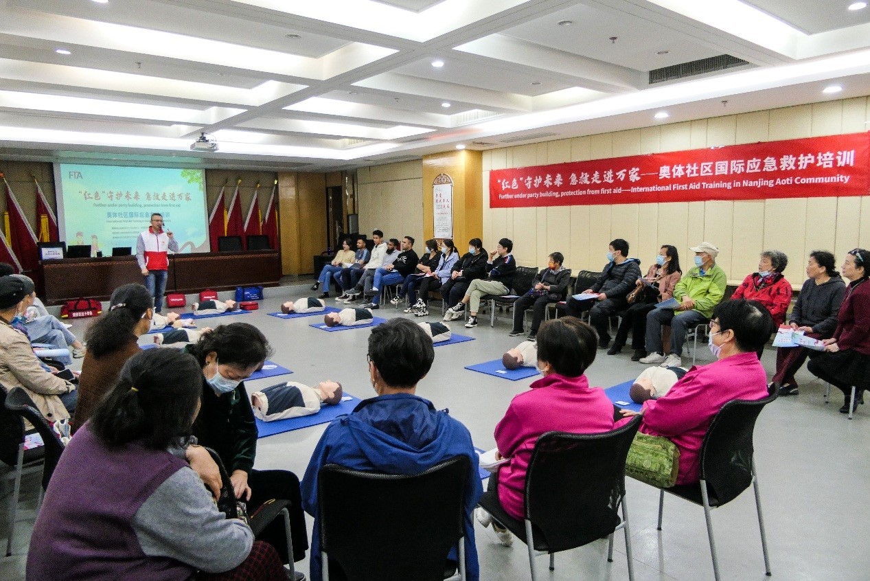 2023年4月27日,南京市建邺区奥体社区举办了一场以“红色”守护未来·急救走进万家为主题的国际应急救护培训,共有100多名中外居民参加。