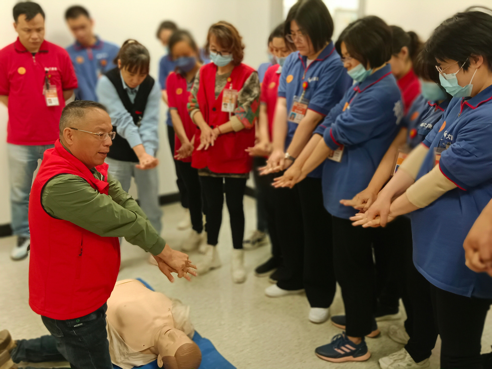培训分上下午两场进行。在上午的活动中,红会讲师朱水清针对不同消费人群,讲解了各种疾病和突发意外情况易造成的严重伤害,并重点传授了心肺复苏、AED的使用和气道梗阻的急救知识。