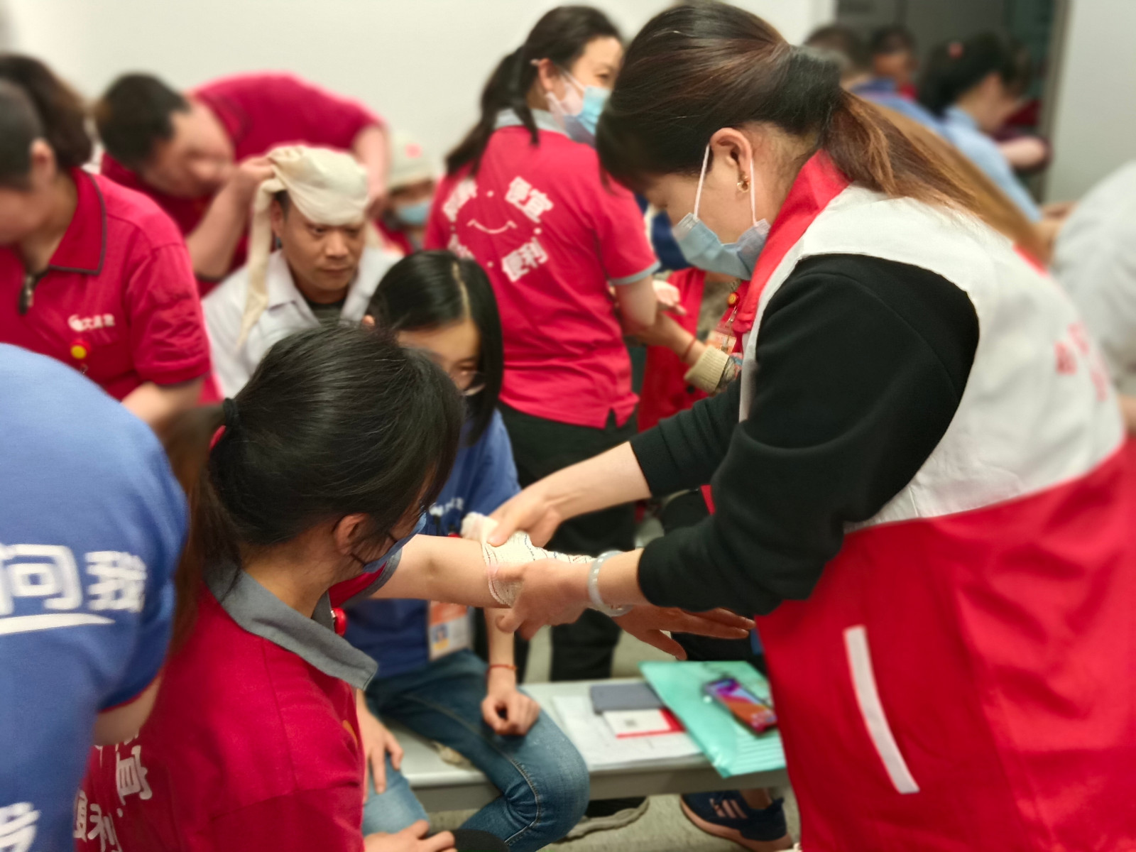 下午的培训课上,讲师赵小文向大润发员工讲解了中暑、心梗、中风、癫痫等病症应急救助方法,并重点就体外创伤的包扎技巧作了讲解和示范。