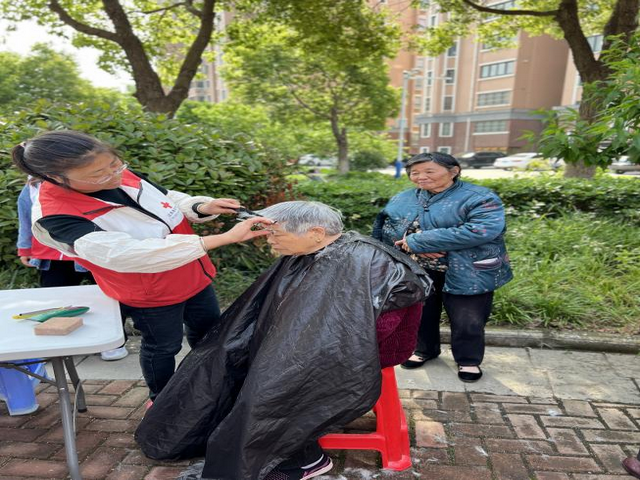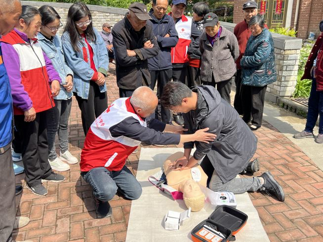 志愿者们在现场开展了量血压、健康咨询、免费理发、发放宣传单等活动,“中国好人”刘宏燕为行动不便的老人提供帮助。红十字会志愿者现场进行了应急救护心肺复苏演示及培训活动,传授居民常见应急救护技能,提升紧急避险和自救互救意识。在讲解过程中采用“理论讲解和操作演示”相结合的方式,重点讲解了应急救护、心肺复苏及海姆立克急救法等急救知识,并现场邀请群众亲自操作,手把手体验系列应急救护实战技巧。进一步增强了居民自我防护意识和自救互救能力,弘扬了“关爱生命、救在身边”的社会风尚。