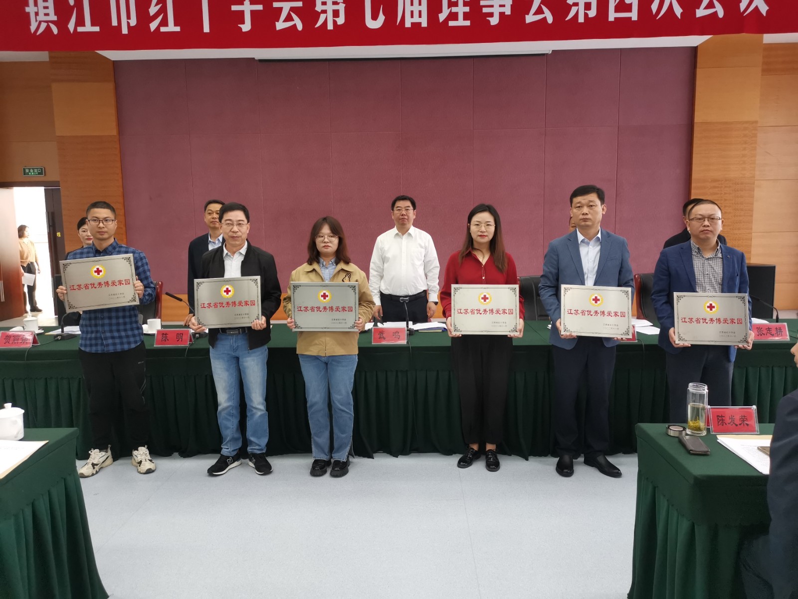 会议向全国红十字模范单位、中国红十字会“会员之星”以及2022年度省级优秀博爱家园颁发奖牌和证书,表扬了2021-2022年度镇江市红十字会“十佳”基层组织工作先进集体、先进个人和优秀志愿服务团队、优秀志愿者等。