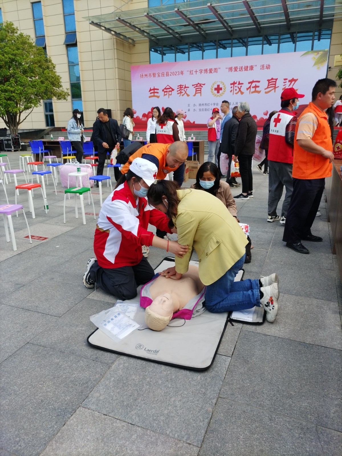 2023年5月8日是第76个“世界红十字日”。5月8日下午,市红十字会联合宝应县人民政府在宝应县氾水镇文体中心广场举行“生命教育,救在身边”红十字博爱周活动。市政协副秘书长冬冰,市红十字会党组书记、常务副会长张宝马,市卫健委副主任、红十字会副会长尹成雷,宝应县政府副县长、县红十字会会长陆宝华,市中心血站站长焦玉东,市、县红十字会、卫健委有关负责人,宝应县各镇、区红十字会会长、秘书长等参加活动。